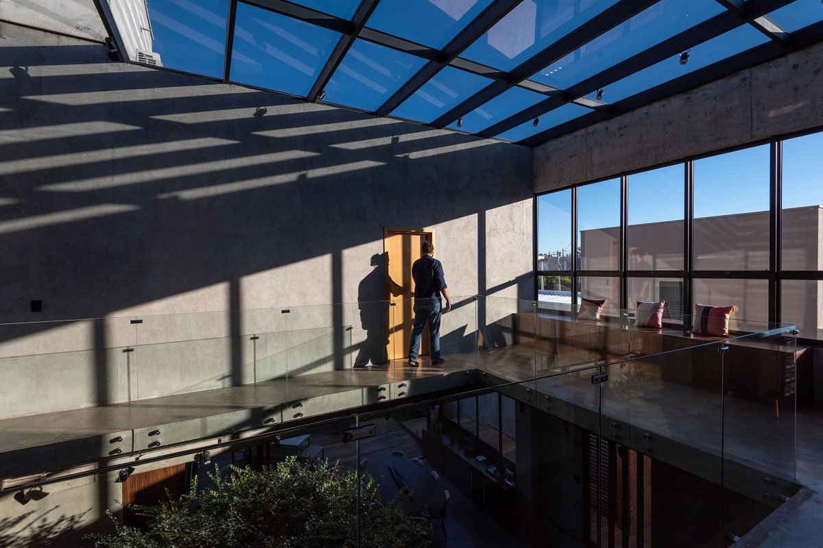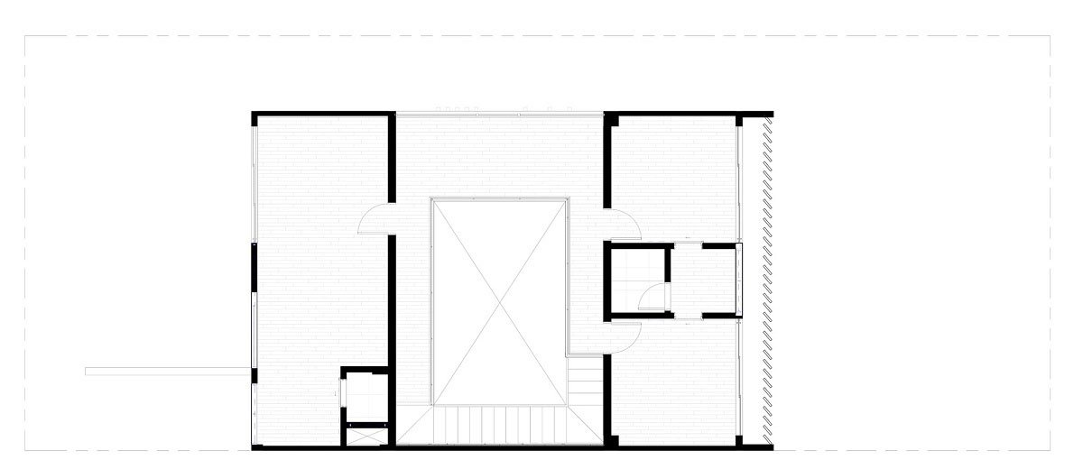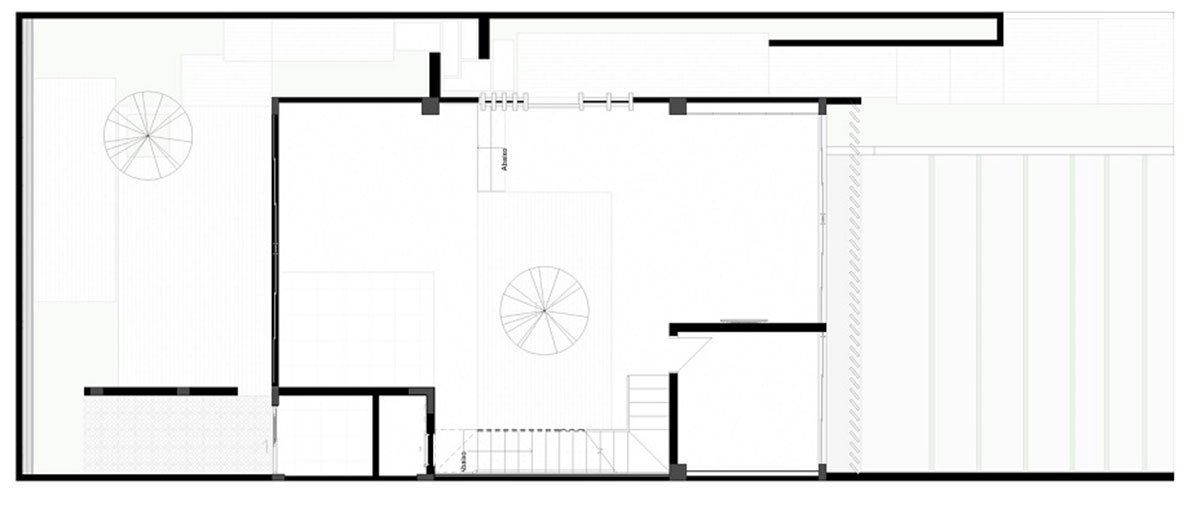 The main access (garage) offers a balance and connection while communicating to the common area and the intimate spaces, inside of a unique flow and sequence offered by the architectonic condition that transcends from a continuous line of circulation – effect caused by the spiral insert inside the cube.