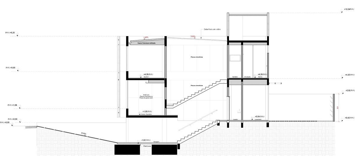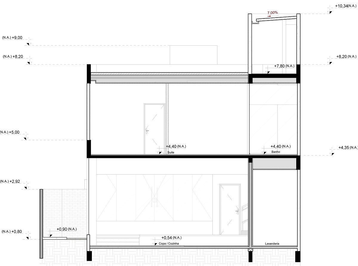 Minimalist, the constructive concept of the Box House is limited only to the necessary, contributing for the sustainability and economy of material. Its construction has eight main pillars and repeats most of its shape and methodology on the lifting dimensions. Still considering the economy, great openings allow a natural circulation of air, transforming the residence’s internal temperature in a few minutes.