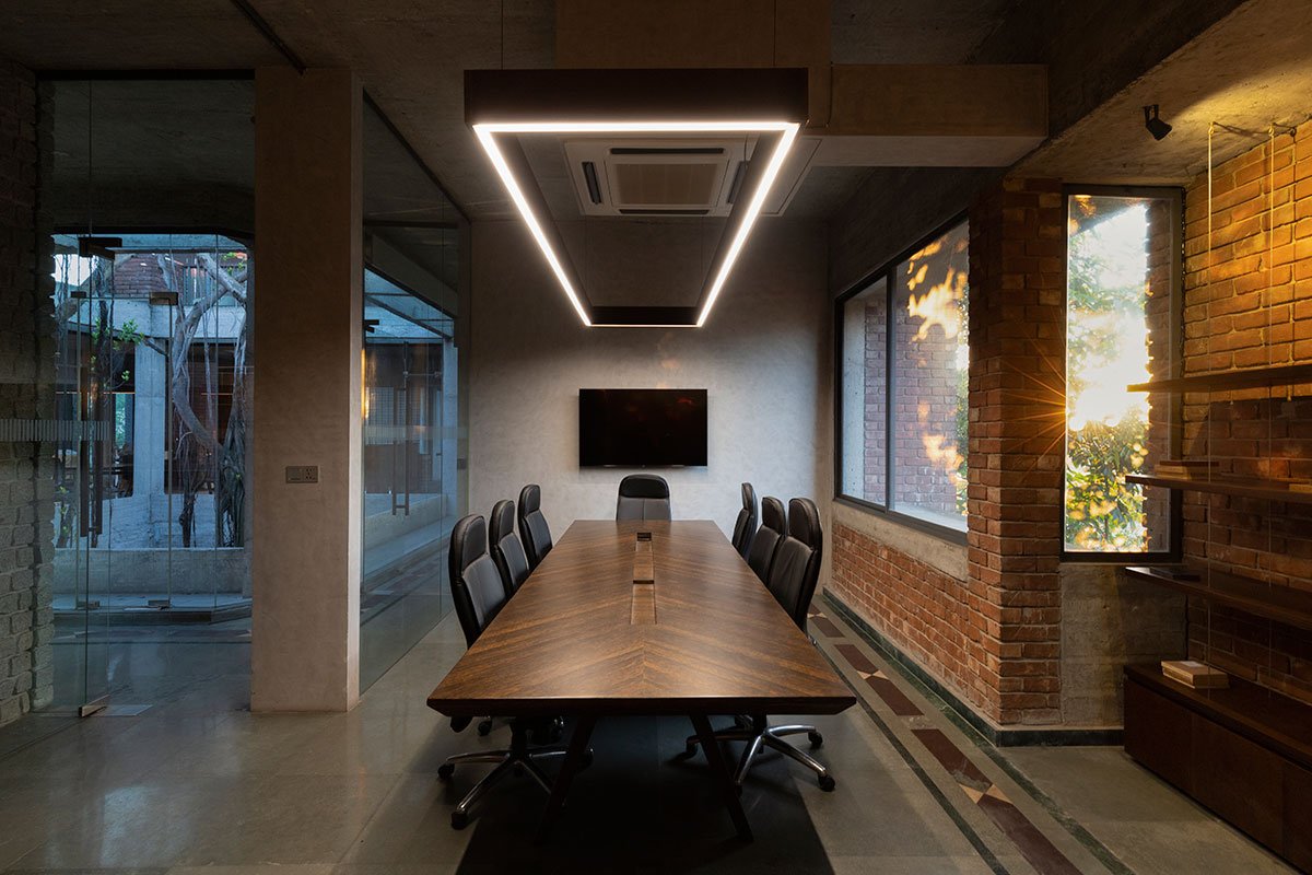 Material Aesthetics: The design palette draws from the philosophy of phenomenology, a tactile symphony that engages the senses. Kota Stone floors, artfully patterned in an oriental dance, guide footsteps, while exposed brick surfaces recount tales of bygone warehouses creating backdrop for exhibits, new office spaces. As cast concrete ceilings and columns with stone renderings, lend an earthy raw authenticity. The tactile journey extends to the newly built walls, where exposed granite stone blocks and brick echo stories of reuse & origin, fostering an atmosphere of continuity.