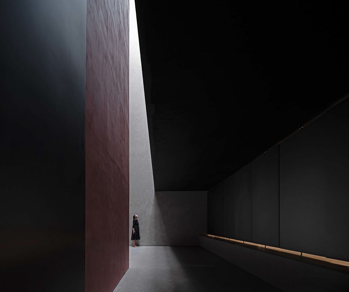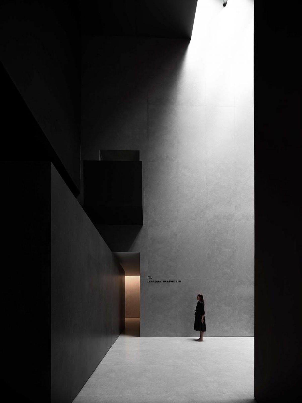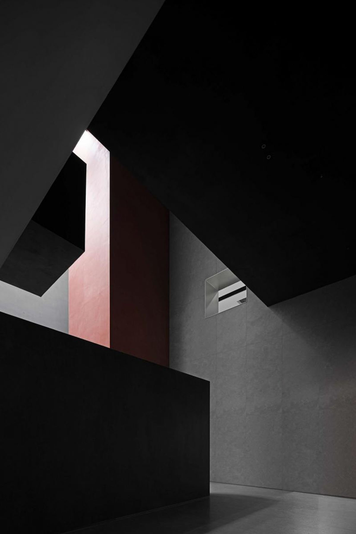 Light & geometry: Light and shadows help create geometric forms in the space. Architecture is a relationship, bringing a pure spiritual experience and creating an abstract, tranquil, pure and geometric space. The interior space is awash with natural daylight and artificial lighting, allowing people to feel the spatial power and resonate with its spirit.