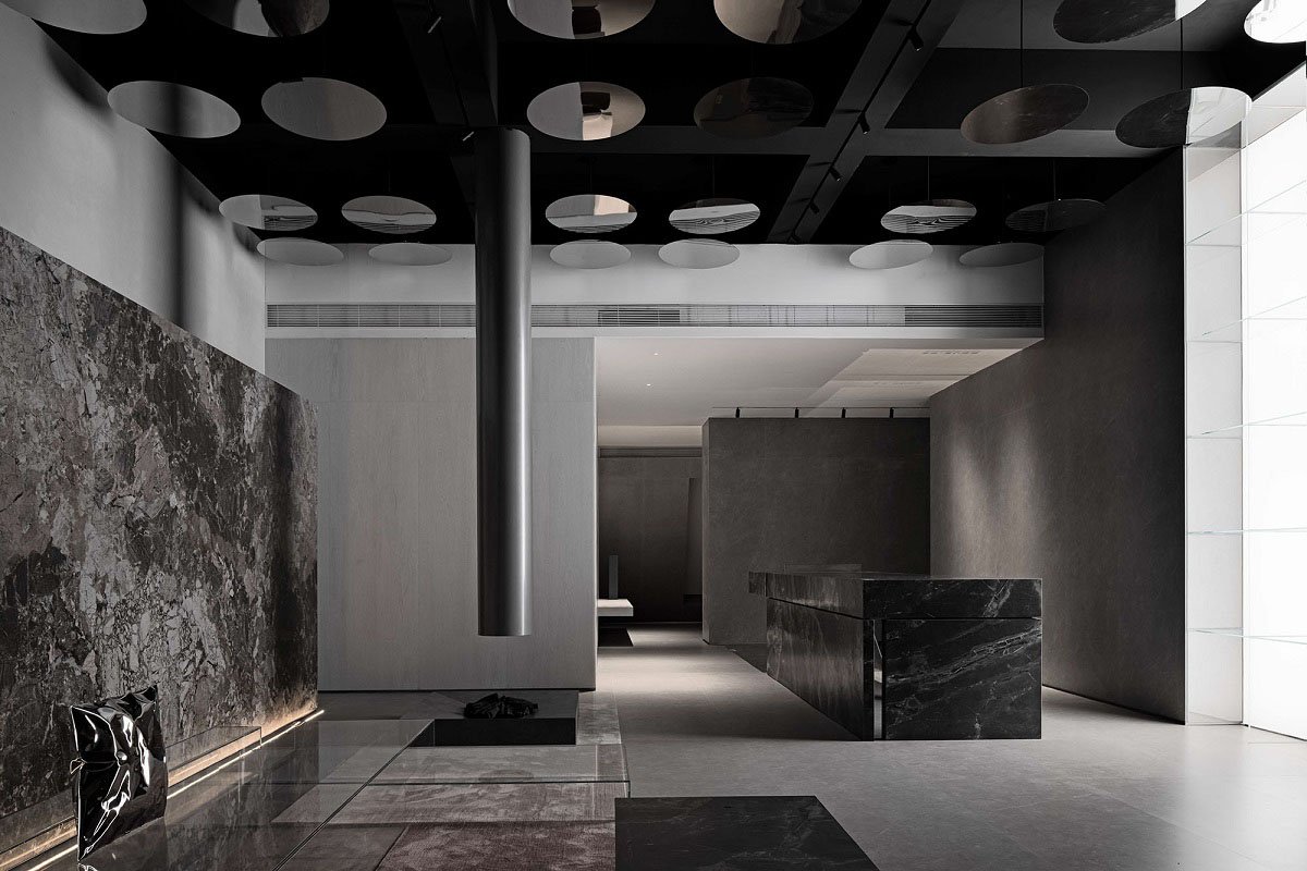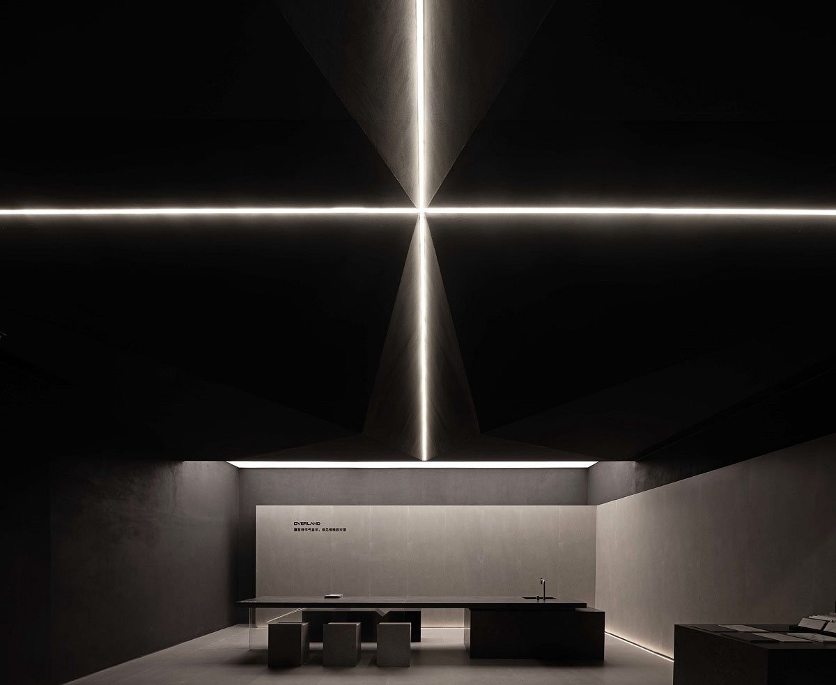 Project background: The project is located in Foshan, China. As a part of ceramic tile brand Overland’s headquarters, it integrates the functions of reception, exhibition and experience, and aims to upgrade the brand’s image. The subtle subjective feeling is turned into technical parameters.The boundary between products and people is explored with a critical eye.