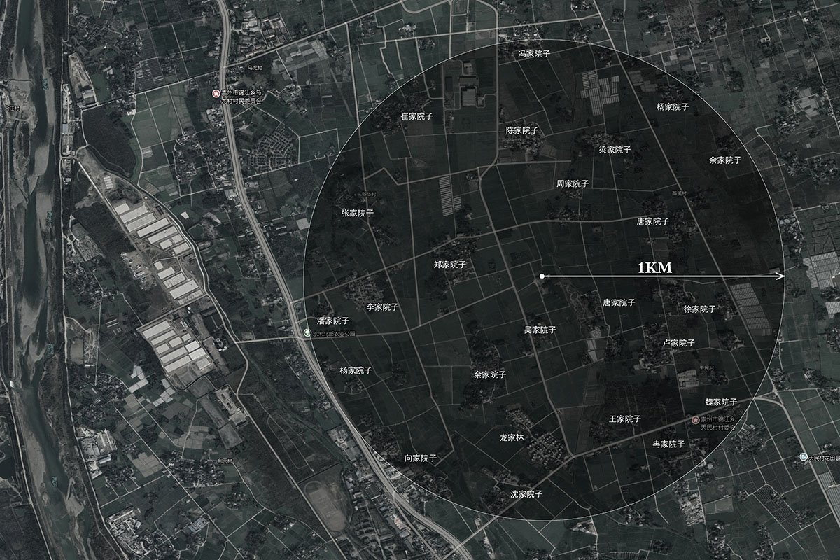 The project is located in Tangjianian, Xinhua Village, Jinjiang, Chongzhou city, Sichuan Province, where is about 50 kilometers (one hour driving) away from the center of Chengdu. This is a typical Linpan in the west of Sichuan. The exhibition center and many Linpan are dotted between thousands of fertile fields. The forest is in the field, the courtyard is in the forest, the forest is planted with bamboo, white walls and green tiles, chickens and dogs, and small Bridges and running water can be seen everywhere.