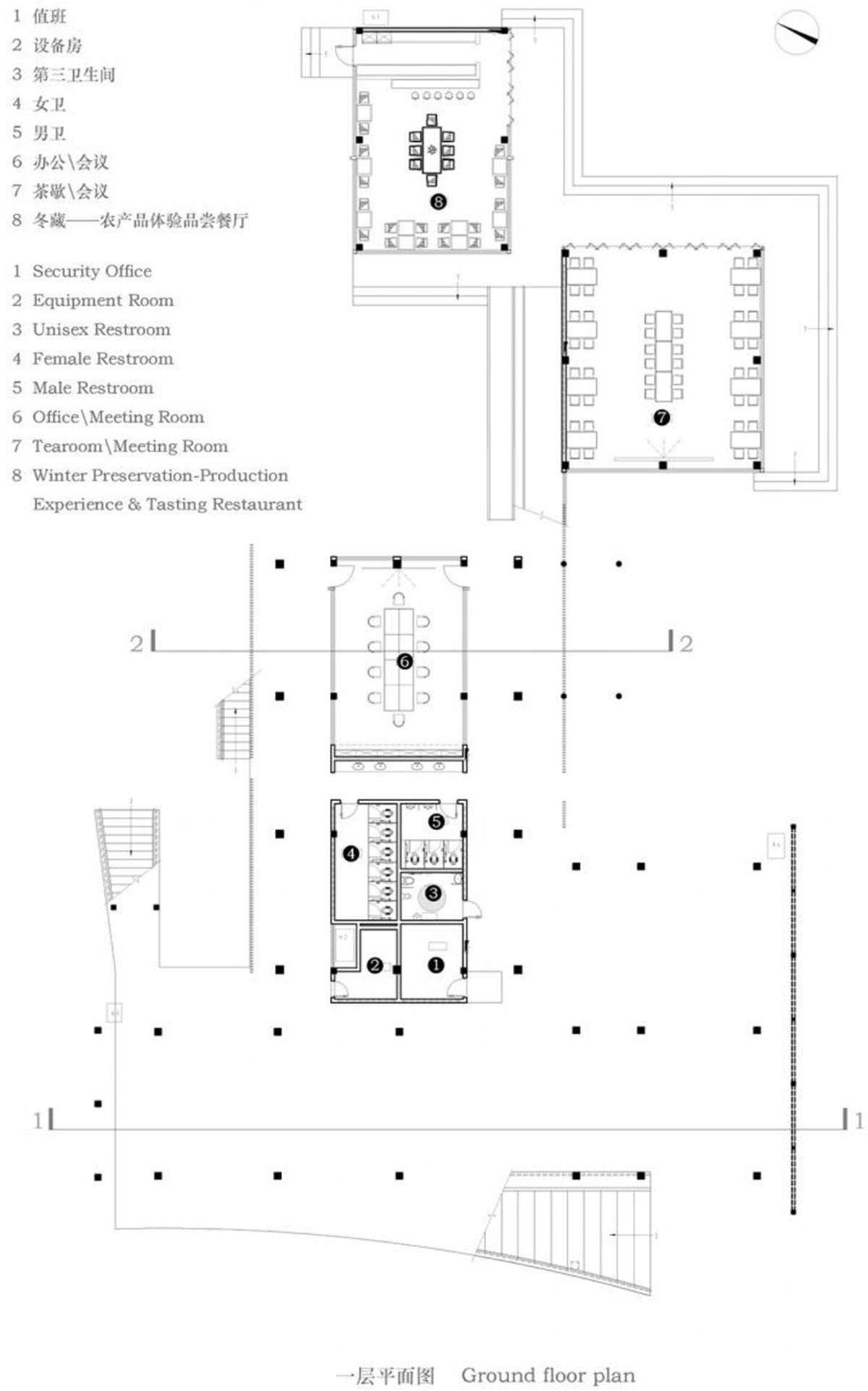 Due to the functional differences between the exhibition center and the surrounding residences, there are also great differences in architectural forms, doors and windows arrangements. In the gloom, the light from the floor-to-ceiling glass of the exhibition center, like a lighthouse shining on the vast acres of farmland. Within a radius of two or three kilometers, it is the only public building in these villages, so it has become the heart of the surrounding residents.