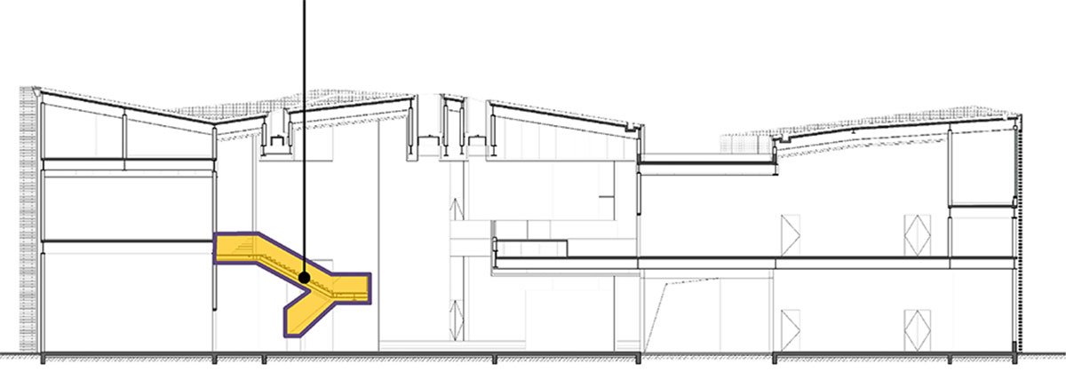 The alternating use of solid ceramic panels and hollow ceramic tiles corresponds to the different spatial requirements of the interior, and the intersection of the two structures also poses a challenge to the design team. After multiple rounds of communication with curtain wall professionals, model deliberation and on-site proofing verification, the design team finally set a 6 mm thick stainless steel plate at the intersection of the angle bisectors of the two structural surfaces, using it as the closing of the ceramic tiles and ceramic panels, and at the same time beveled the materials on both sides, so that the three together form a delicate structural conversion effect.