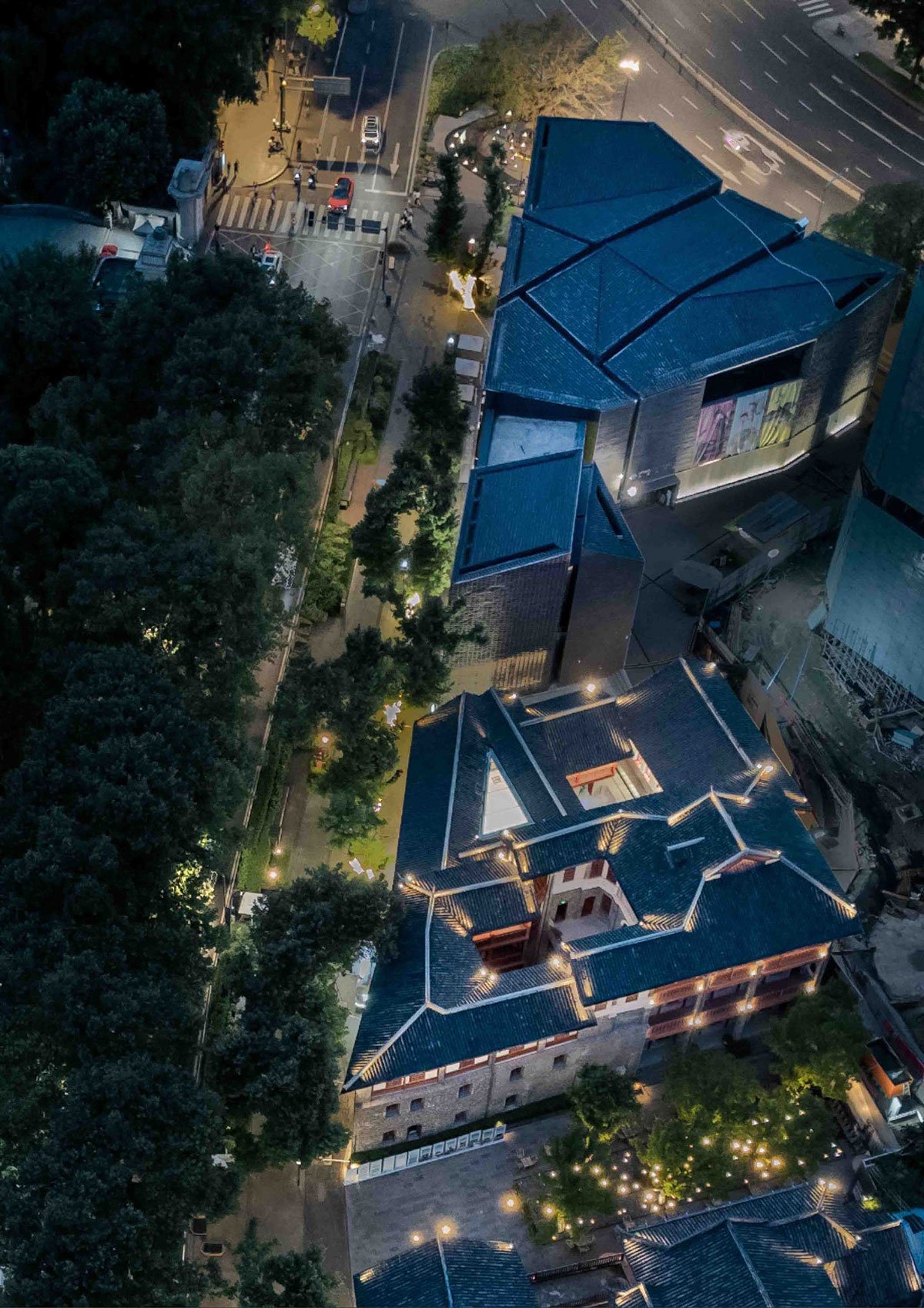 The design breaks up the building form, not only forming a harmonious roof form, but also achieving a form control effect combined with the indoor exhibition hall space. The five small-volume “boxes” are divided into two groups, corresponding to the “art gallery entrance + exhibition hall space” and the “art gallery exit + derivatives store”, which are connected by a street arcade. This design technique makes the side of Citang Jie and the ancient building space have a sense of continuity on a human scale, meeting the needs of the urban volume on the side of Shudu Avenue. The design coordinates the new form with the old architectural style through the undulating and continuous slope roof changes, while making the building both modern.