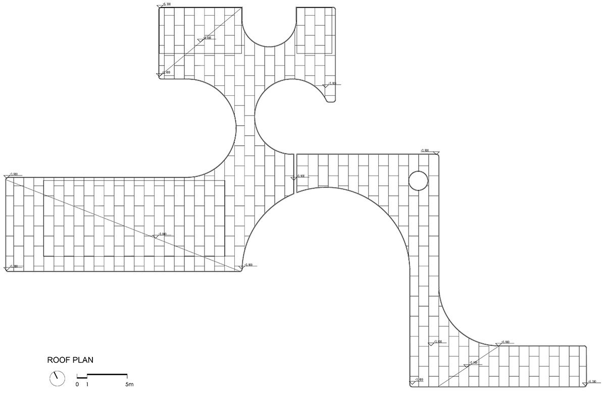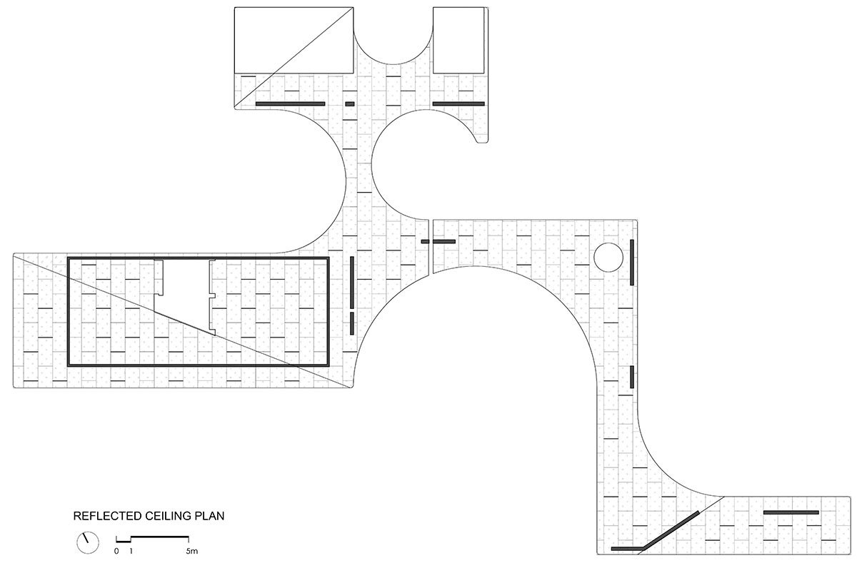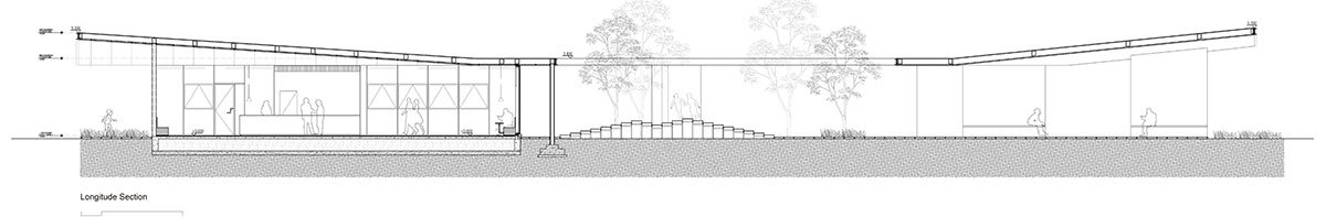 With light and shadows, the arc-shaped roof forms concave and convex silhouettes on different facades and grounds. These shadowy shapes continuously alter their properties and configurations throughout the day, composing a visually polyphonic scenery of an ever-changing landscape.