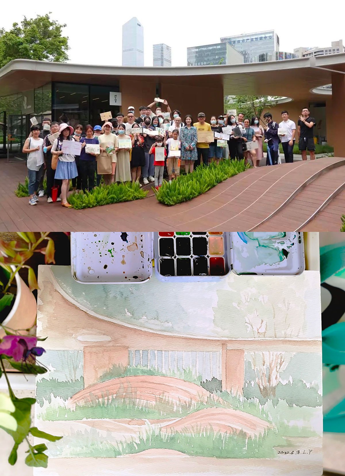 In the outdoor garden, the architect customized the undulating outdoor seating and plantation, which has turned out to be a favorite spot for family visitors. After the completion of the CloudLand, the book cafe has become a go-to place in the local community for breakfast, lunch, and afternoon tea, while the outdoor porch continues to offer a shelter for spontaneous public events to happen. As the pavilion is well received in the neighborhood, more and more communal activities are now happening around the building, such as artistic sketching sessions and bakery workshops, etc.