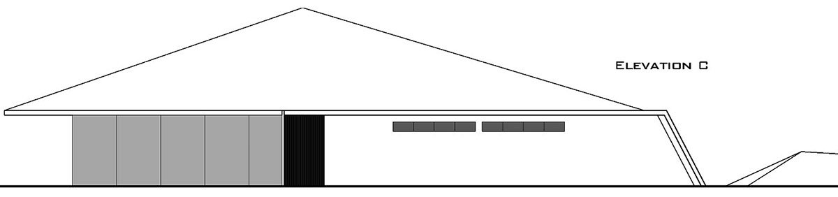 A series of triangular metallic roofs of the community center cover two main spaces: one as a service zone and the other for public use with the largest liberty and possibility for different programs and activities. Large curtains of glass are installed on the façade to keep the transparency between interior space and the greenery of the park surrounding. The finesse of the structure is pursued to obtain the lightness and to create a dynamic horizontal contemporary figure working in concert with the river.