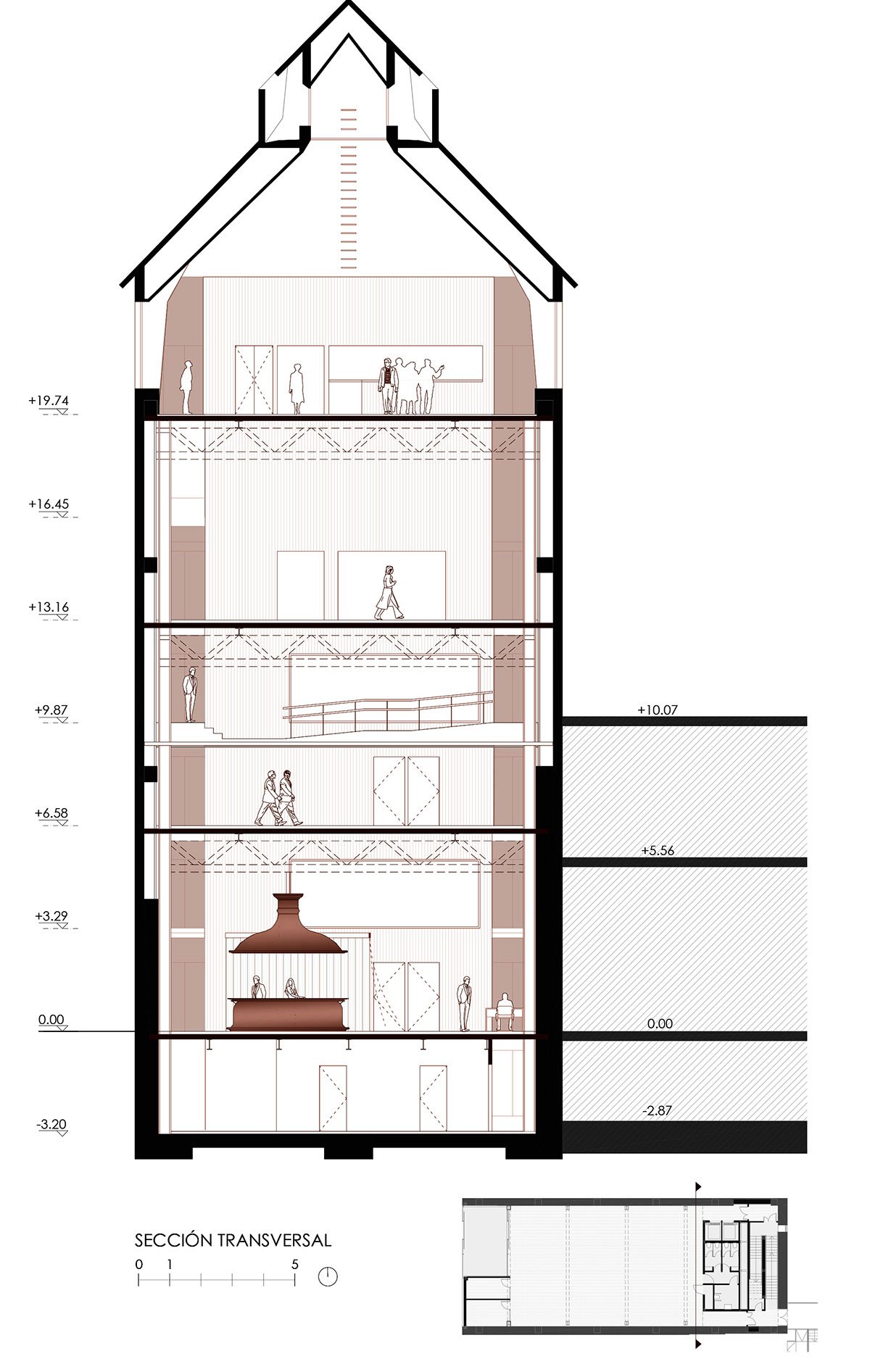 The new building program, in spaces formerly intended for the beer brewing process, asked to resolve the coexistence of different uses related to each other: restaurant, brewery, microbrewery and hotel school. The careful conceptualization of the space in its entirety and the particularity of its different uses resolves the hotel school activity in an orderly way, despite the functional complexity.