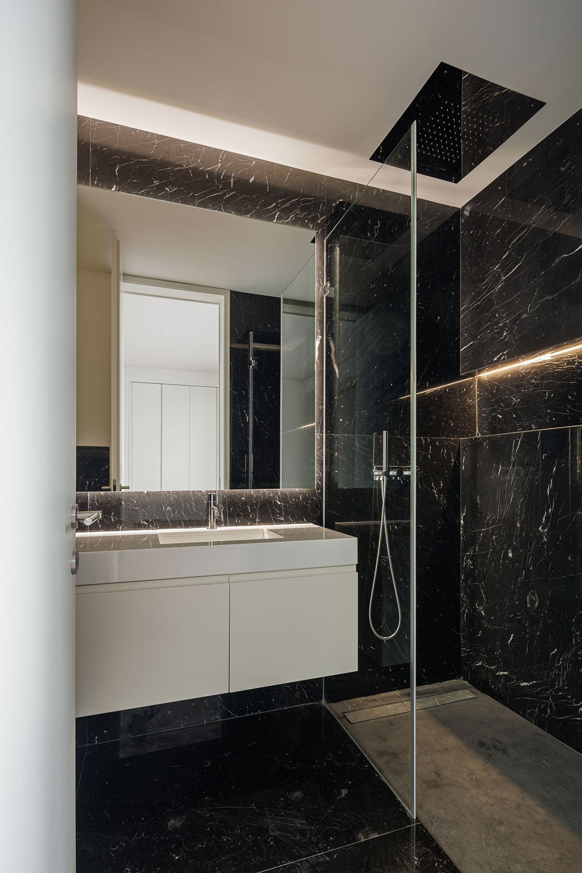Materiality was the key point for this volume—not to be just a house but to function as a sculpture. Priority was given to materials of national origin, including both wood and natural stones, as well as some equipment. The interiors were conceived and designed with the aim of obtaining a welcoming and relaxing environment, giving the house a unique, modern, and noise-free character.