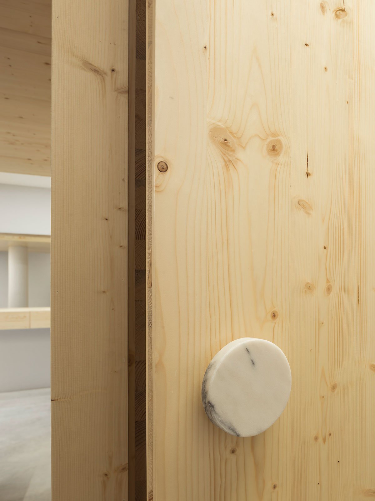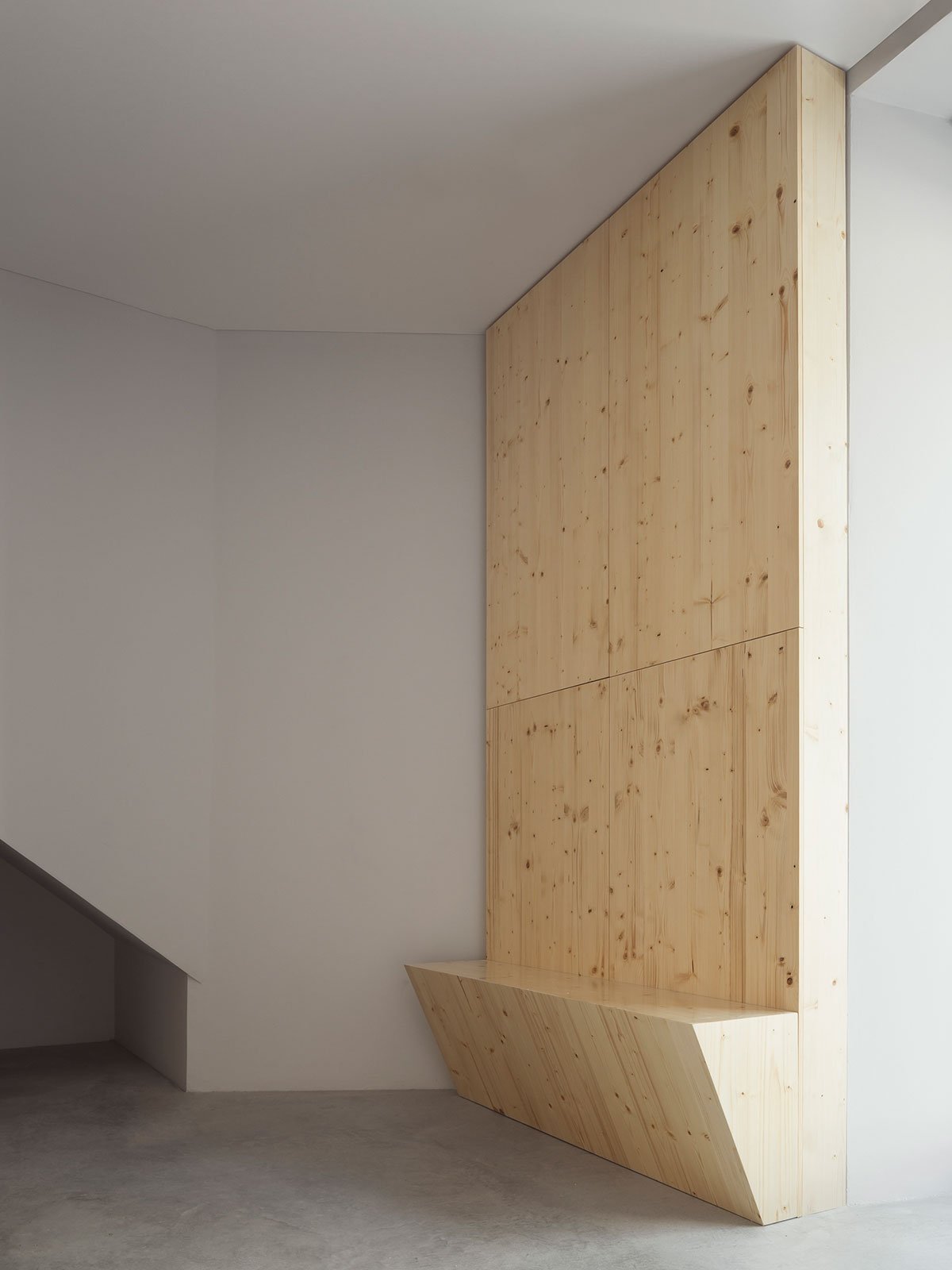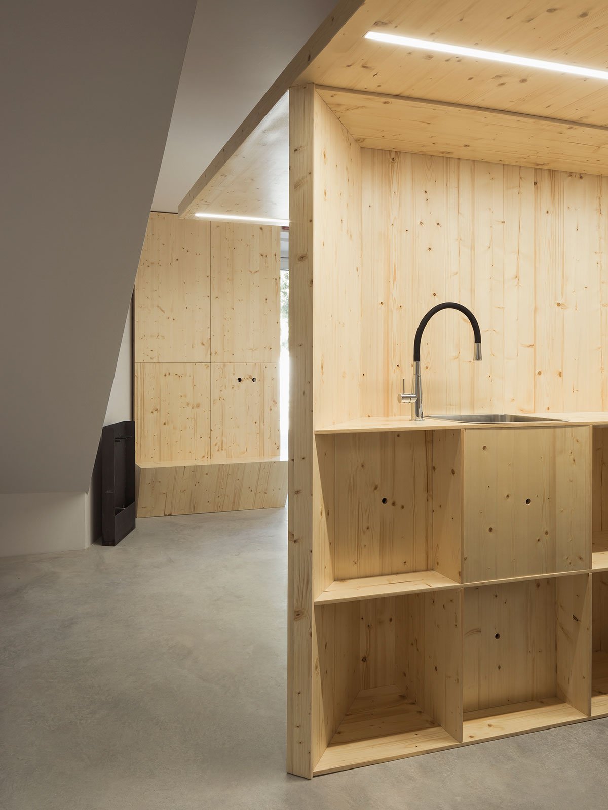 Wood is the chosen material that defines the interior decor of this project. The programmed space is created from it, as also the work surfaces, the reception desk and a waiting area, near the entrance. Concrete is used for flooring, hence creating a slightly colder character, in contrast with the key material – wood.