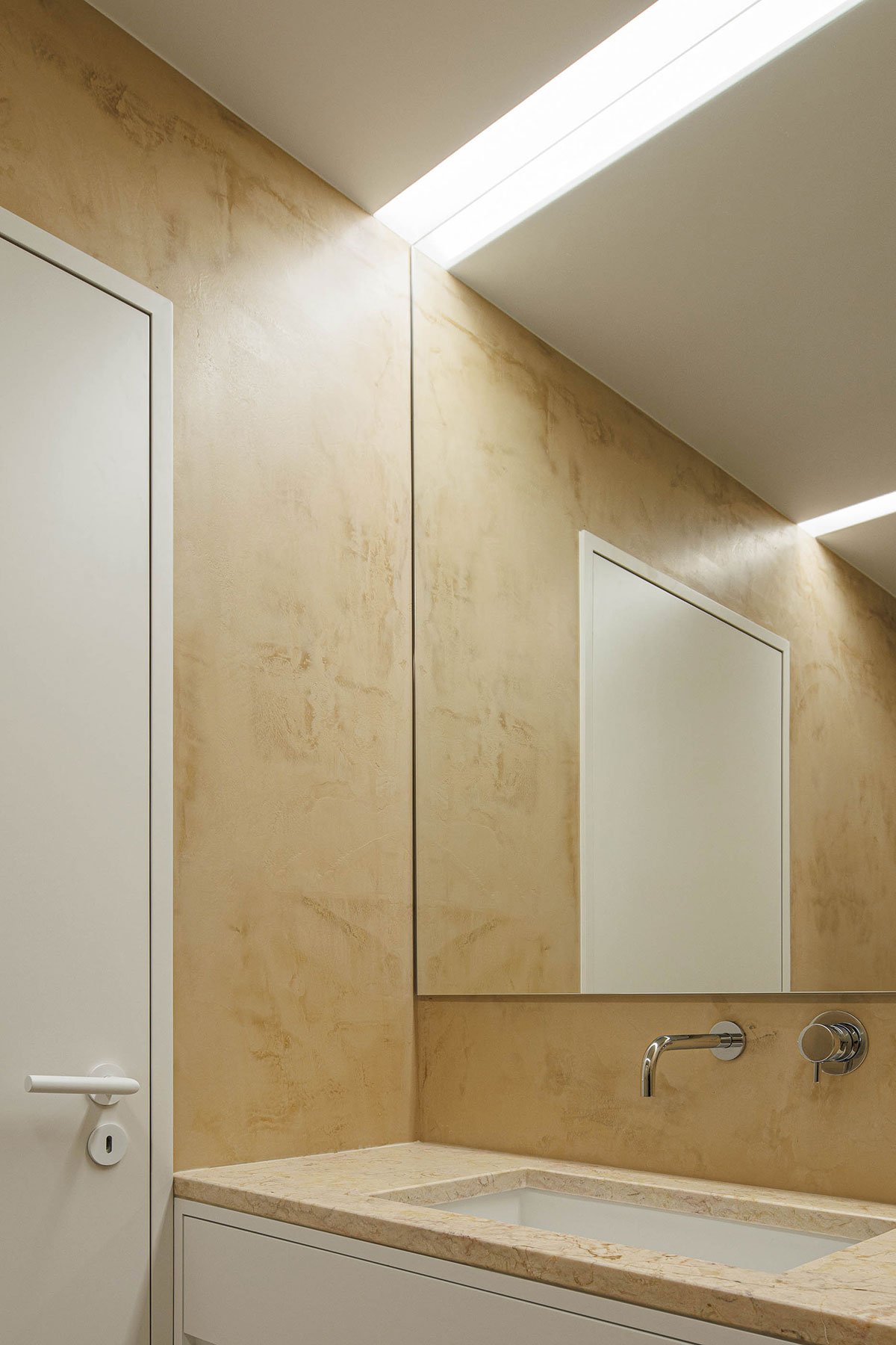 The spatial distribution of the flat separates the sleeping areas from the social area, creating the necessary privacy in relation to the entrance which, through a split vestibule, organises access to the garage, the bedrooms and the lower floor.