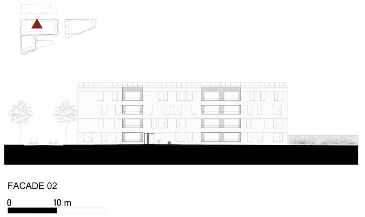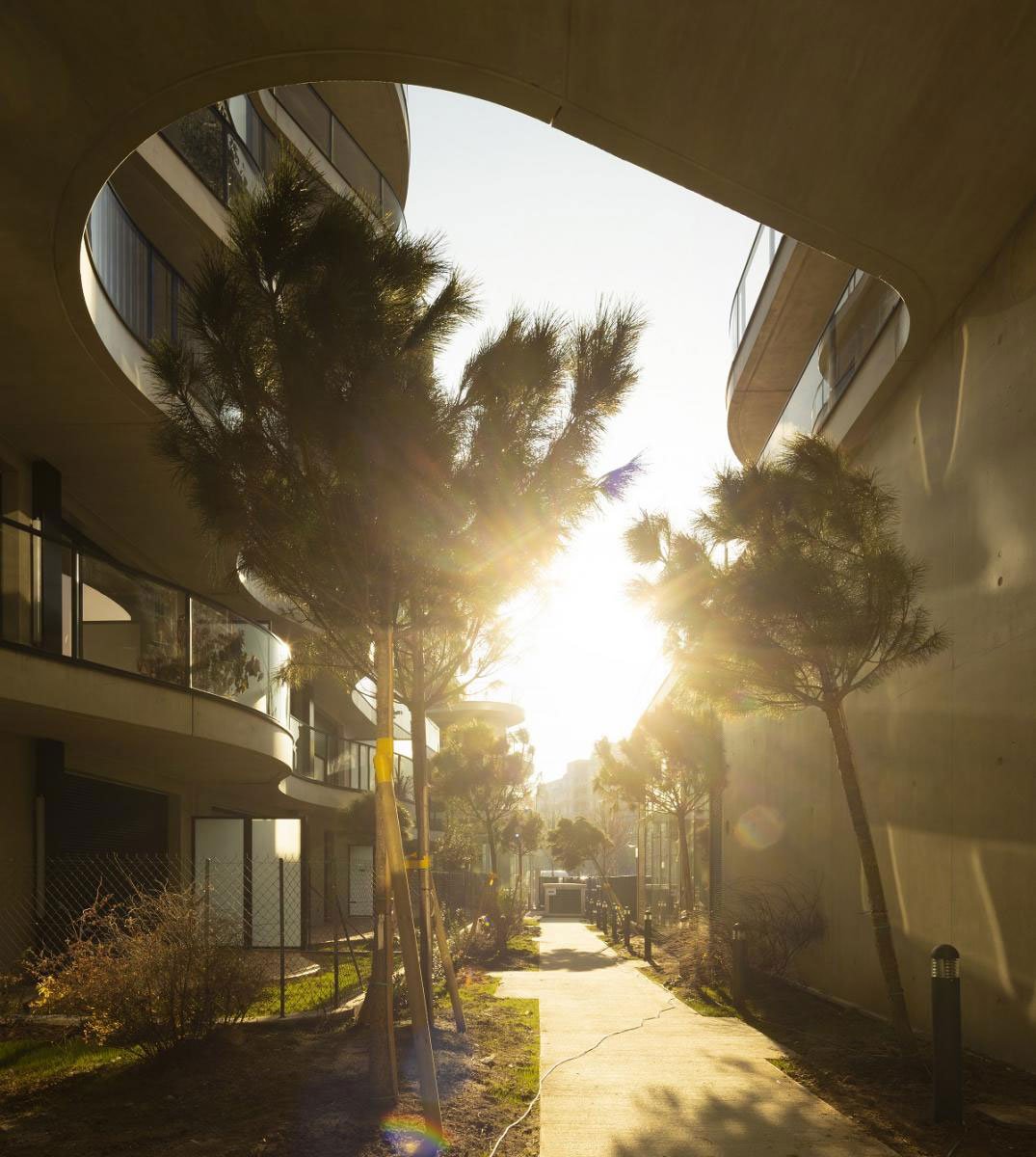 [Text as submitted by architect] The “Courbes” project is part of the urban renewal program of the ZAC Charles de Gaulle in Colombes. The area is easily identified thanks to the eclectic architecture of the urban fabric, blending bungalows and apartment houses dating from the 1980s-90s. The tramway has finally reached this neighborhood, which has enabled the beginning of its genuine transformation owing to its highly prized proximity to the business district of La Défense.