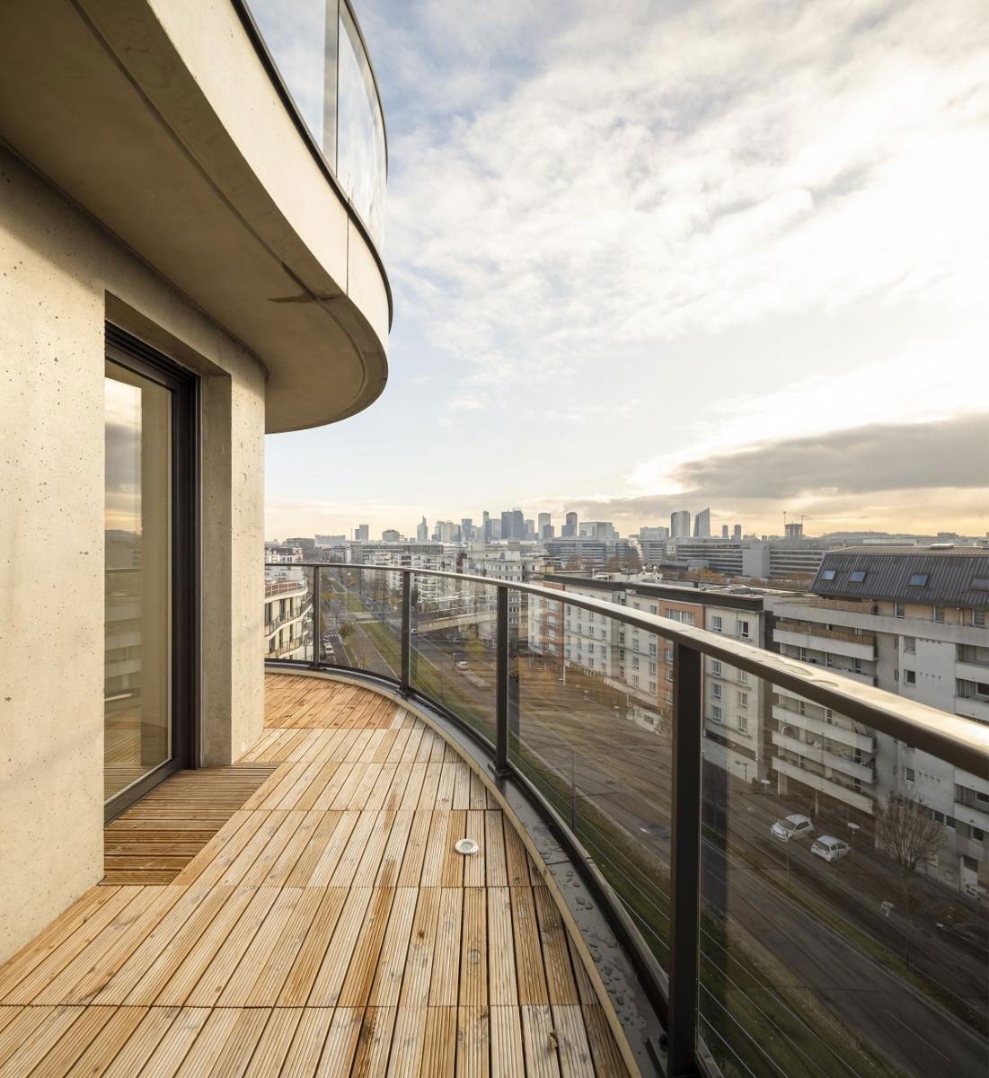 The exterior spaces are on average 22 m² per apartment. Though situated in the second ring of Paris suburbs, it benefits from quality interior spaces, illustrated in particular by the choice of solid oak parquet floors for all the rooms in the building as well as the common areas. The southern edge of the property is treated like a ship’s prow overlooking the outside. The apartments enjoy large full-height windows and broad terraces facing south with an unobstructed view of the district of La Défense.