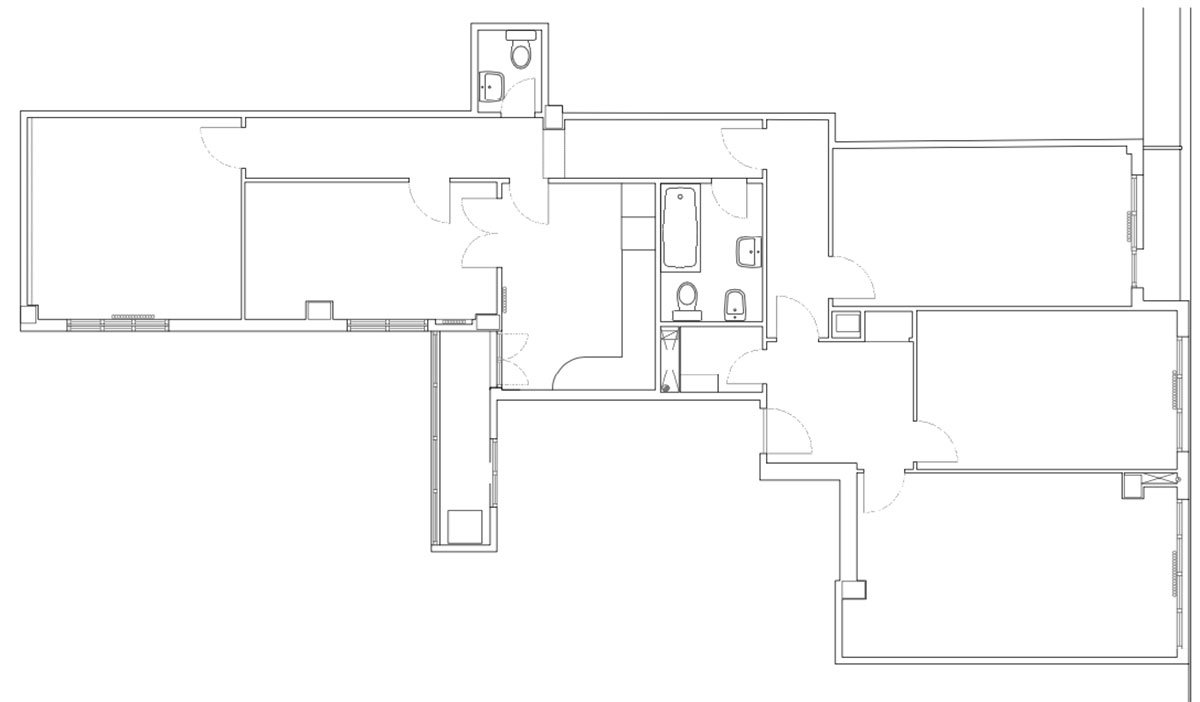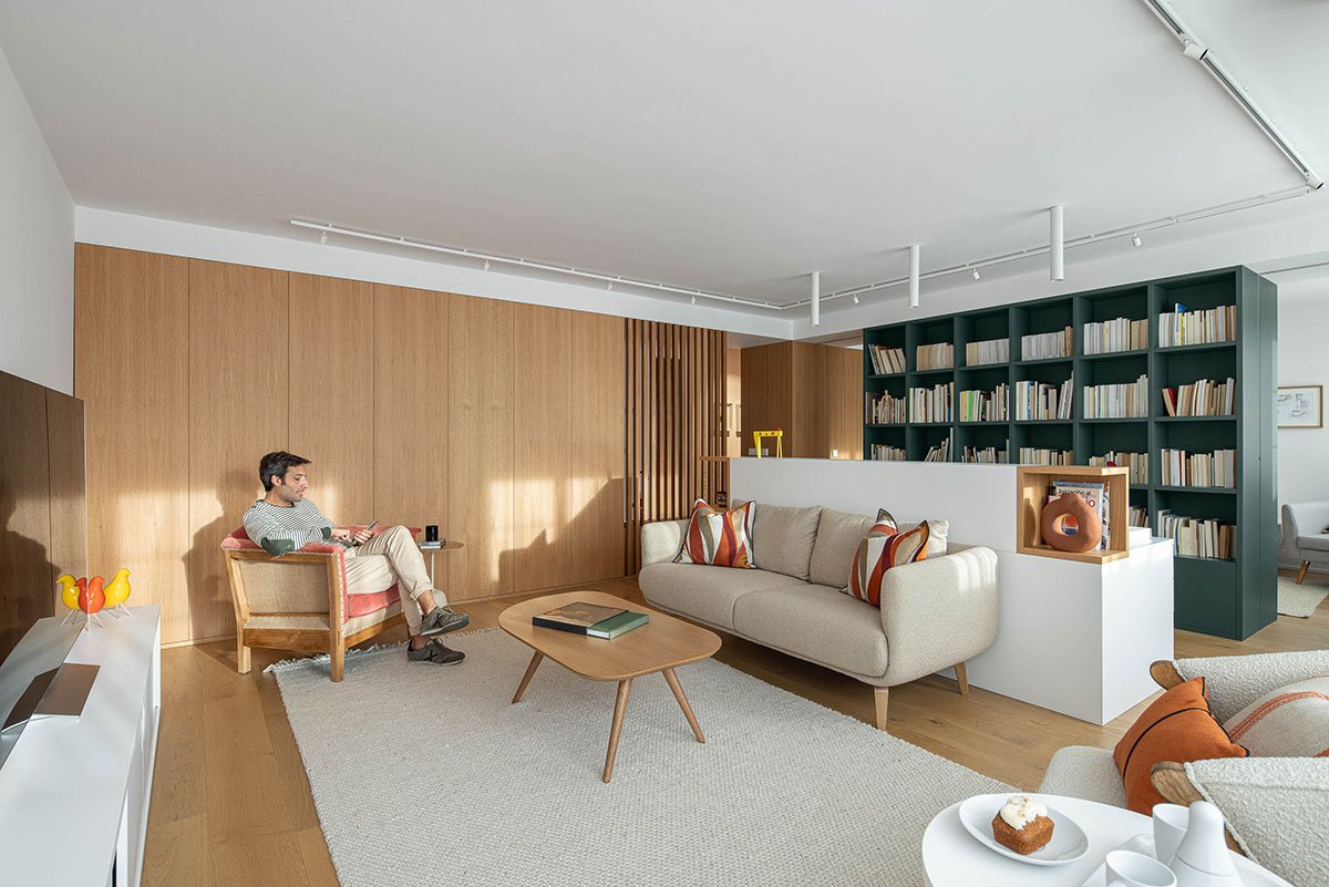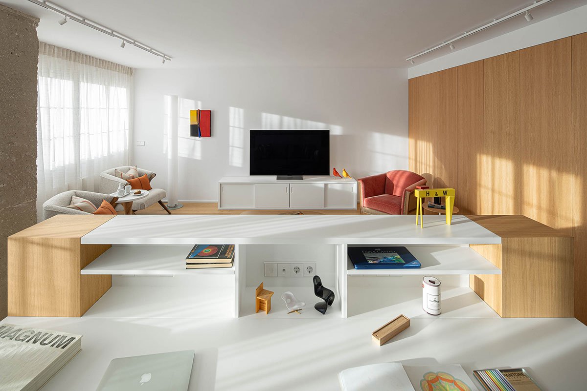 An integral reform is proposed that addresses the total reconfiguration of the space, on the one hand in the spaces facing south, it is to unify the rooms generating a large living room with a work area that rests on a large shelf-cabinet that serves as a dividing element with a multipurpose room (occasional bedroom, gym, reading area). The kitchen and dining room spaces belonging to the area that overlooks the courtyard are arranged in a more open and fluid way, using furniture as a delimiting element. At the back is the master bedroom preceded by a dressing room, which also serves as an acoustic element in front of the day area.