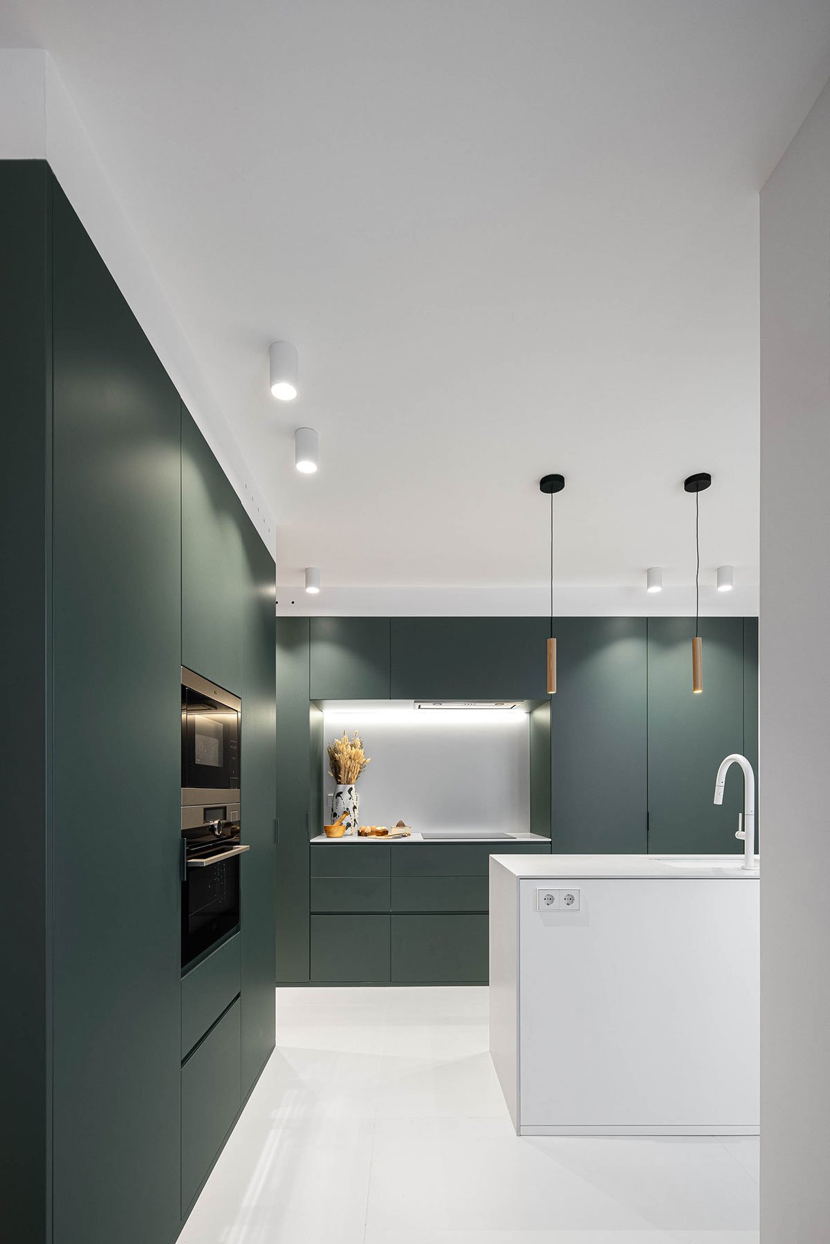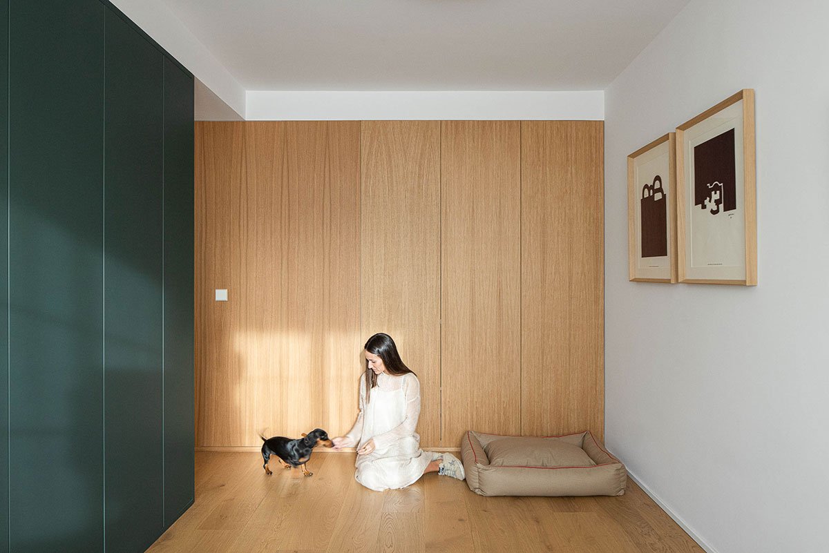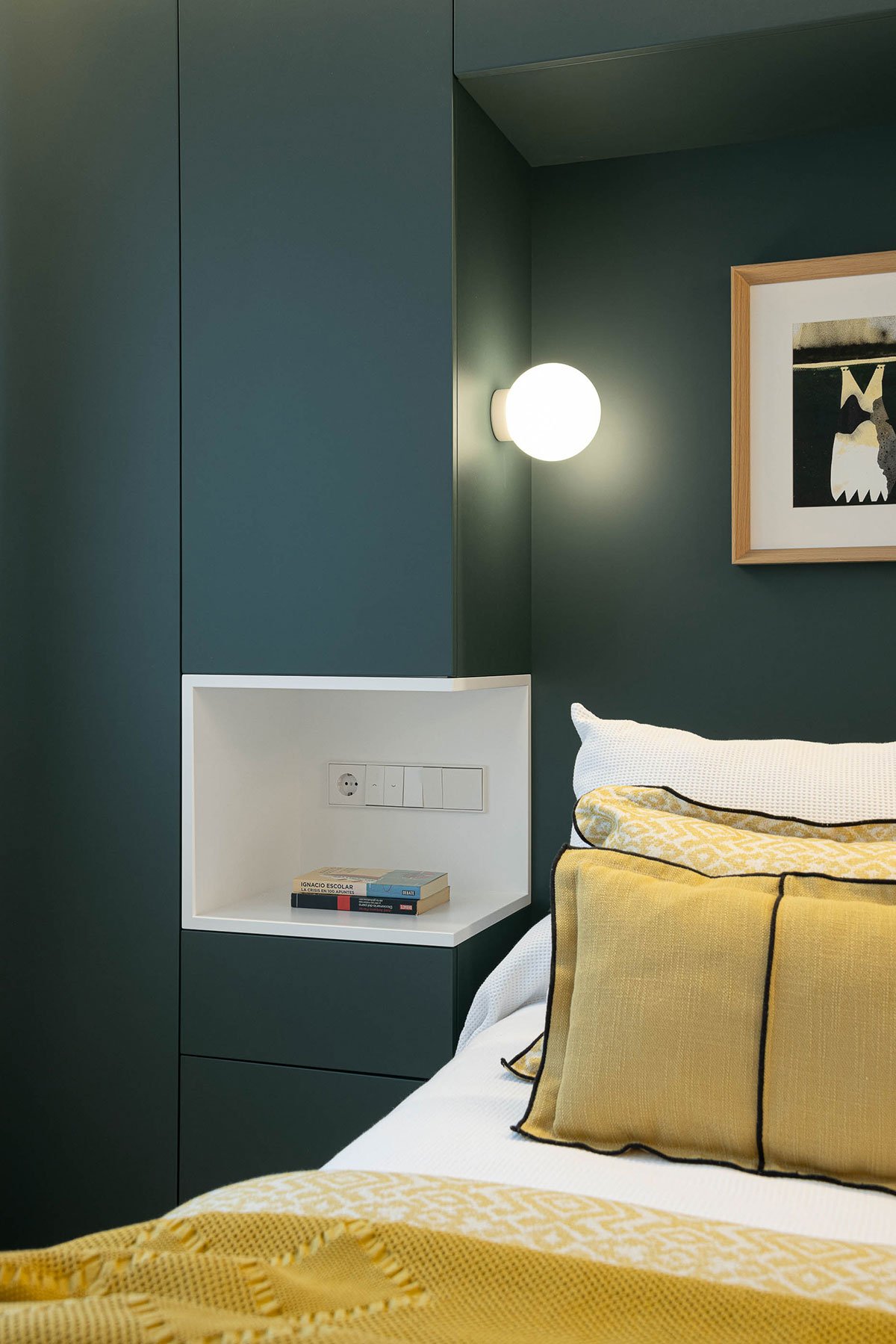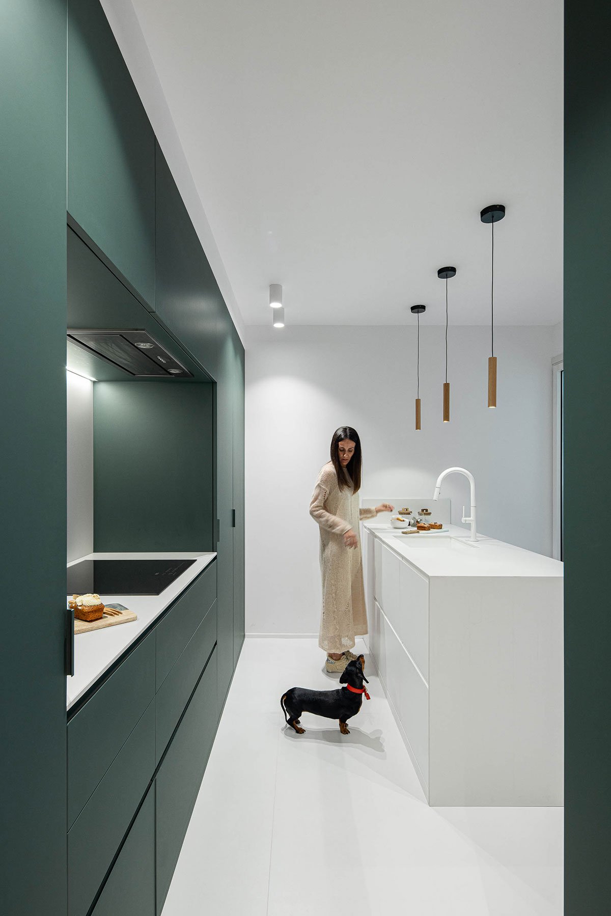 The materials chosen for the refurbishment combine oak wood in the elements that seek the continuity of the spaces, the olive green colour achieves the separation between different spaces and white as an element that unites everything.