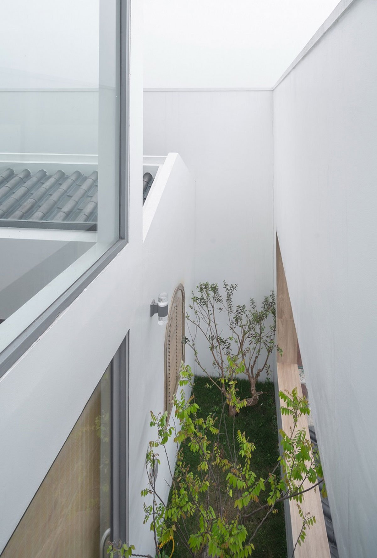 Excerpt: Dau – Dau House, designed by Landmak Architecture, sculpts the block box with a minimalist front to get the light for the rooms inside. “Drop” inside this minimalist and modern box is the Traditional block space with many roofs, small gates. Like “curling” a street into a vertical direction. The bottom of the land, we cut a void (skylight) 90cm wide extending the entire land (11m) to get the light and ventilate for the bedroom, family room in the back.