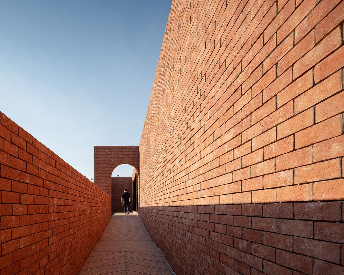 ‘Dawn’ and ‘Dusk’ can be portrayed through the image of the Sun when it appears and disappears. On the exterior, part of the circle, representing the sun, is carved out of the brick wall, symbolizing sunrise and sunset. This incomplete circle also applies to different zones in the form of an arch.