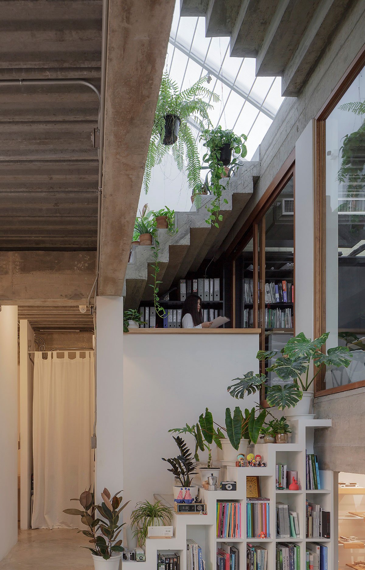 Since the limited budget, the materials selected in this building are simple and economical, including raw concrete structural elements, polished concrete floor, white painted wall, and wooden and glass windows and doors. However, the combination of these materials could make this office cozier and also raise the unique characteristic of ‘Design in Motion office’.