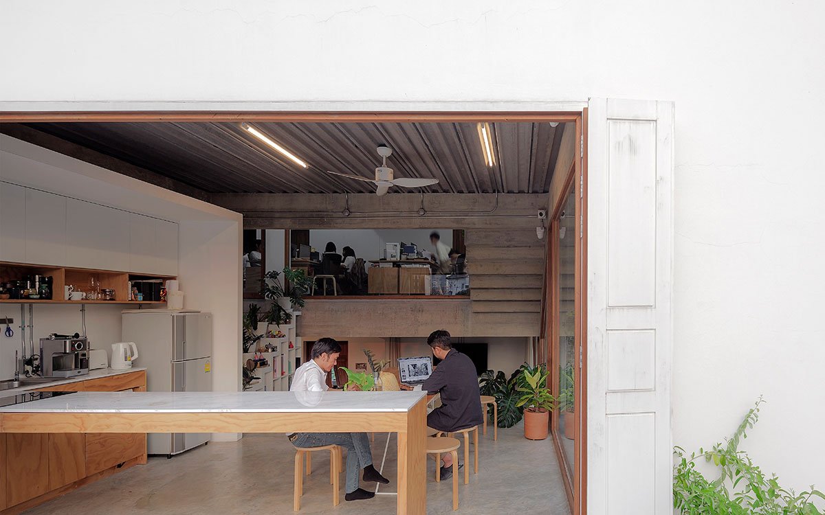 Excerpt: Design In Motion designed their own office attempts to link vertically isolated areas to be connected together in the both aspects of the view point and operation. By doing so, a storey has become two equal sized platforms placing on the opposite side of the building and the level between both platforms are stacked by a haft height of one storey. In other words, this created a ‘split-level office’. The outcome of this type of the space is that all areas could be connected throughout the building, yet separated by their own functions.