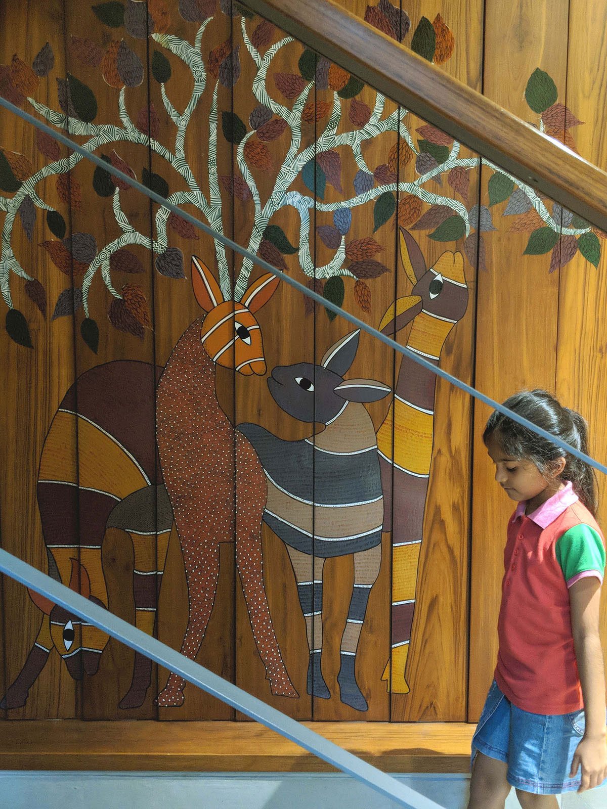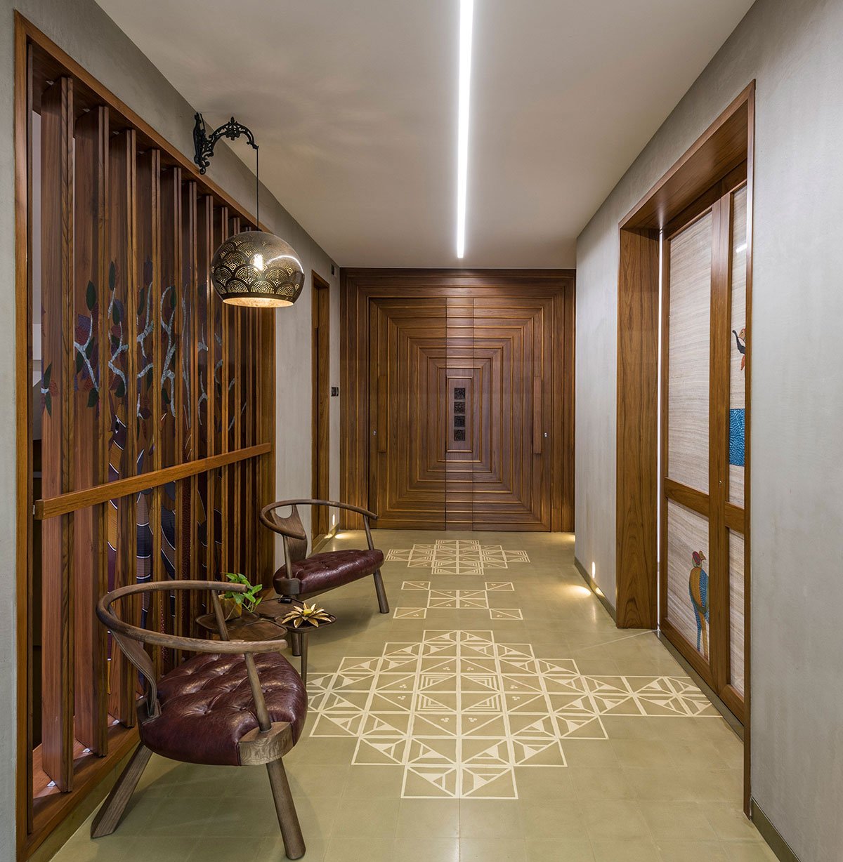 Designs for this house revolved around works involving large amount of hand skills. It is because of these skilled craftsmen of our times we could deliver all that was conceived and imagined. Customization in textiles was done from weavers and manufacturers. Use of traditional ‘Gondh Art’ had been an integral part of the design process. Strategic use of this art form helped us create interesting aesthetics across the house. While we kept deliberating on various aspects of design and aesthetics, we were very conscious about the end user. We intended to make this space a ‘HOME’ for its users, than merely a well-designed ‘HOUSE’ for our clients. We intended to fuse our designs with their lifestyle. The spaces and majority of furniture were customized keeping in focus every single person of the family.