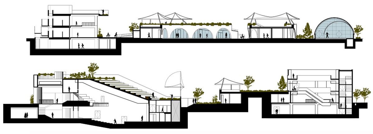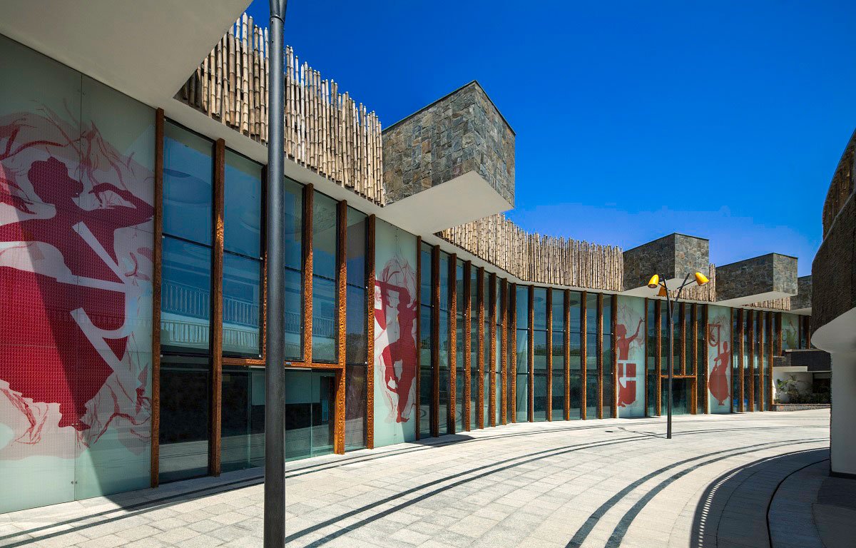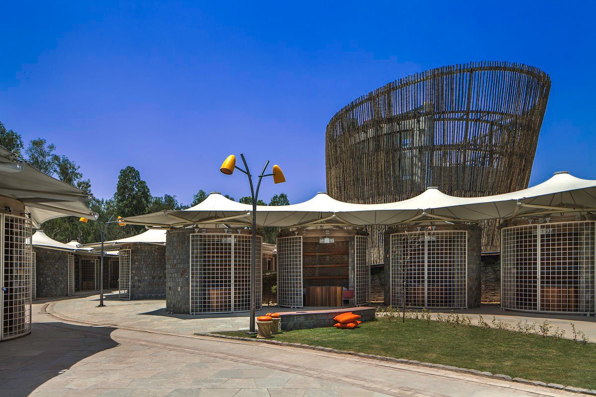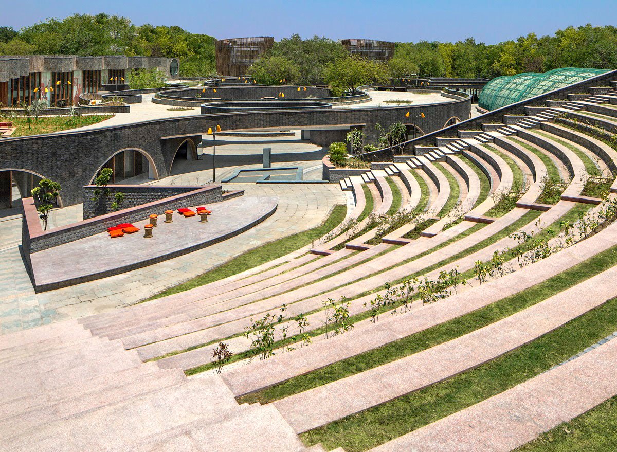 Conception of the program is as large a design intervention as its physical manifestation. The final functionality found an indoor, well-equipped,800-capacity auditorium for formal concerts and an informal similar capacity open-air amphitheater that works simultaneously with independent spaces and support services. A multipurpose, multi-scaled exposition hall for exhibitions and seminars is proposed. A set of four baskets houses a music museum, a music store and music workshop space along with tourism offices and cafes. A large, air-conditioned food court extends into shaded courtyards and expansive greens for the basic need of spill overs. Formal, informal and open shop spaces are created to bring in the required sensitive adaptations of malls, markets and bazaars into this haat. An independent fine dining with an extended banquet facility is created to reinforce the business plan of this complex cultural complex.