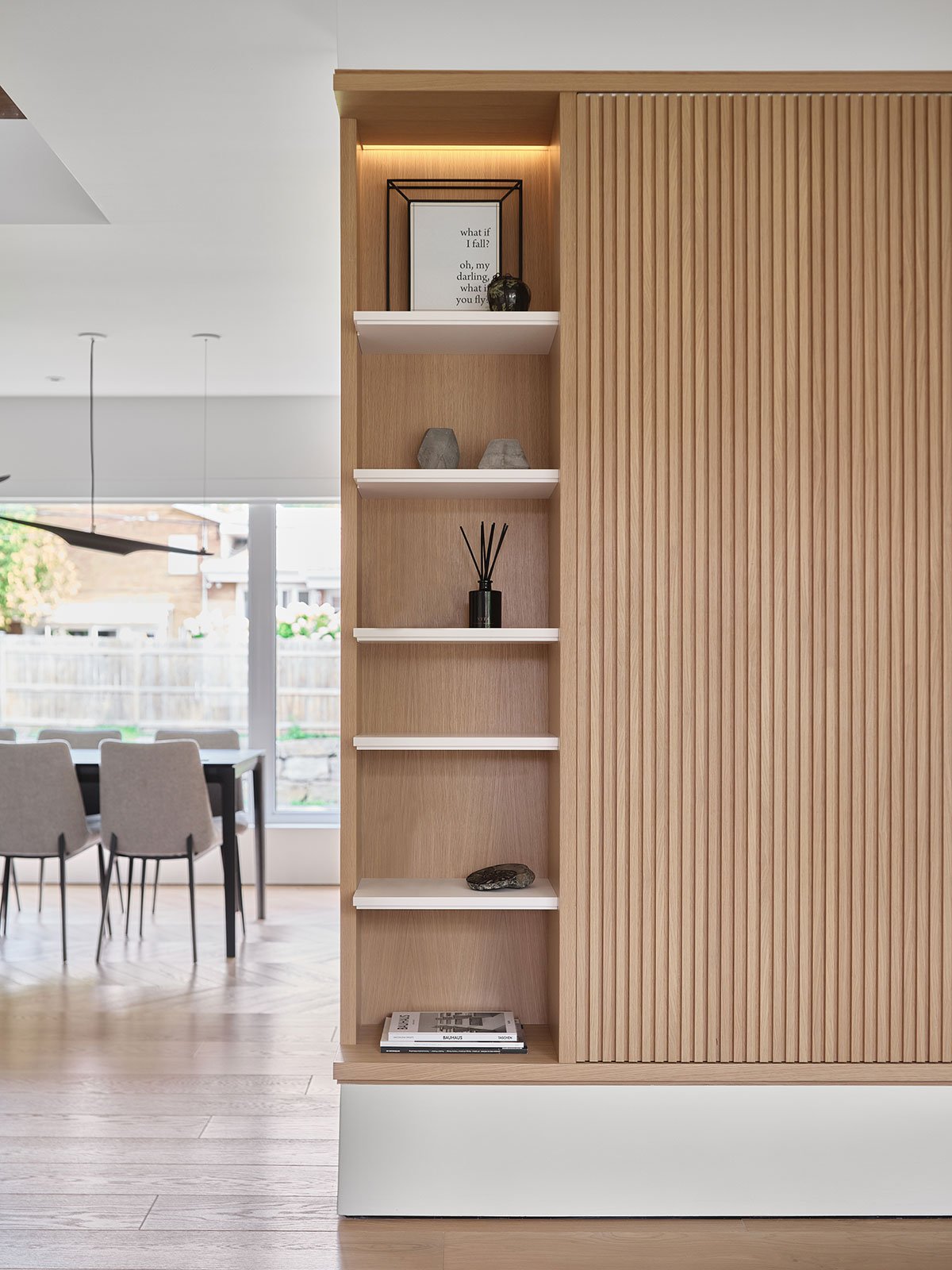 “We wanted each room to have its privacy, and the views between each space not to detract from the enjoyment of the moment, but simply to allow glimpses of other family members moving from room to room. So, even though the majority of the two floors are one open plan, the bespoke furniture and positioning of the rooms offer a sense of calm and privacy,” explains Gatline Artis, owner of the house and designer at Entre Quatre Murs.