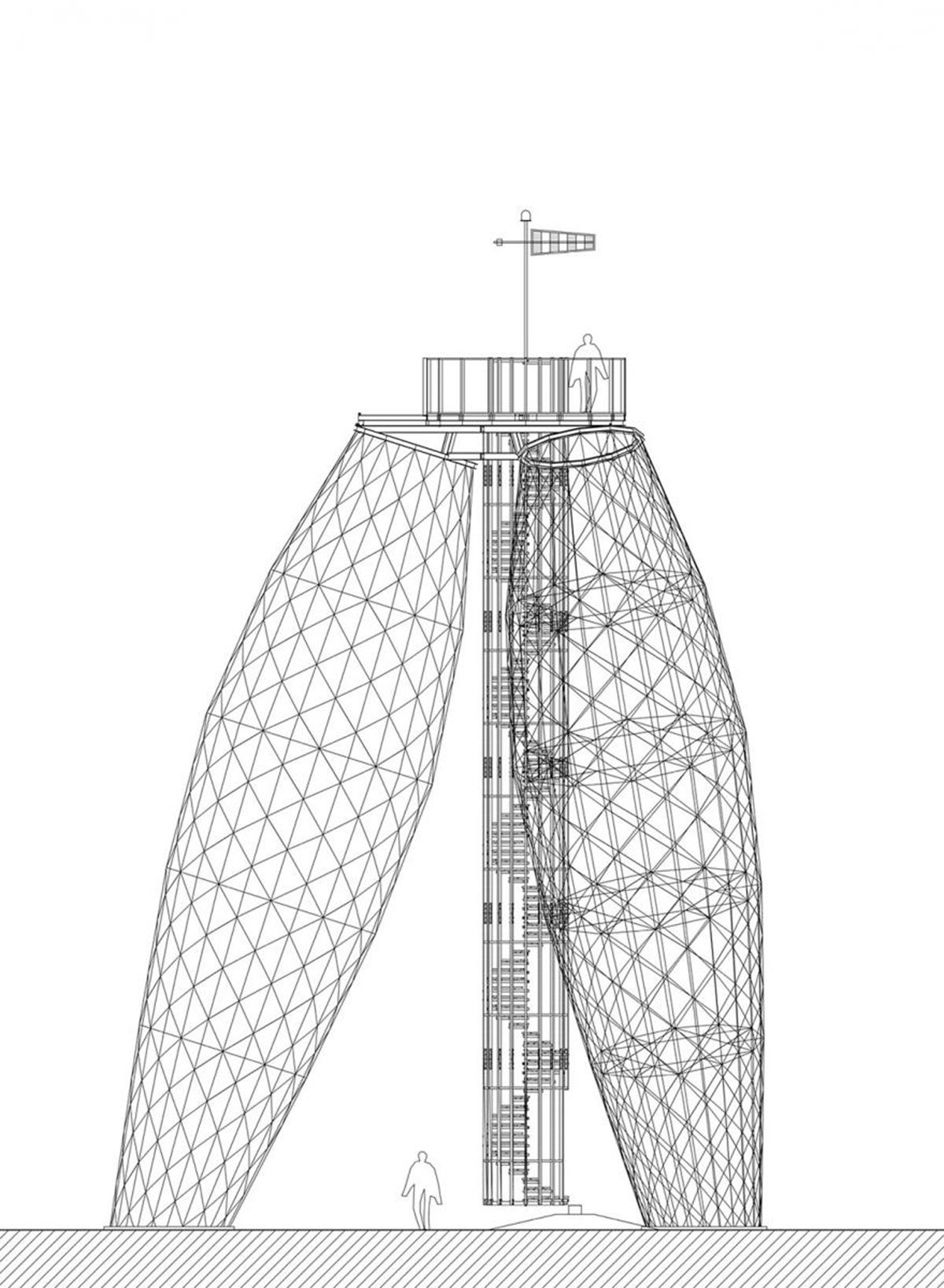 [Text as submitted by the architects] The idea of enriching Prague 14 with a lookout tower was born out of an idea of the mayor of this city district, Radek Vondra, in 2013. He convinced Landia Management s.r.o. to join forces with him in order to transform this dream into a reality. They announced an invited competition, to which we contributed three different proposals, including a highly experimental one called Doubravka. And it won!