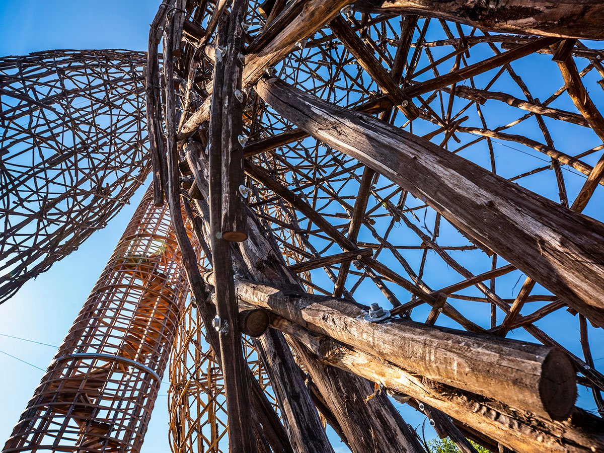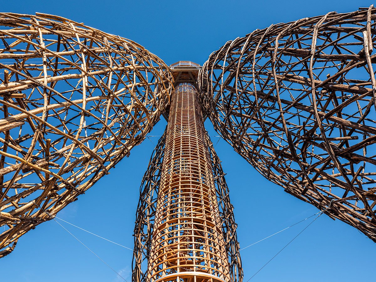 What is revolutionary about the tower is the use of a non-traditional building material – thin twigs not usually used for this type of structure. We were inspired by natural forms from Papua New Guinea and real birds’ nests. In order for us to be able to use this type of structure, we needed years of research and experimentation.
