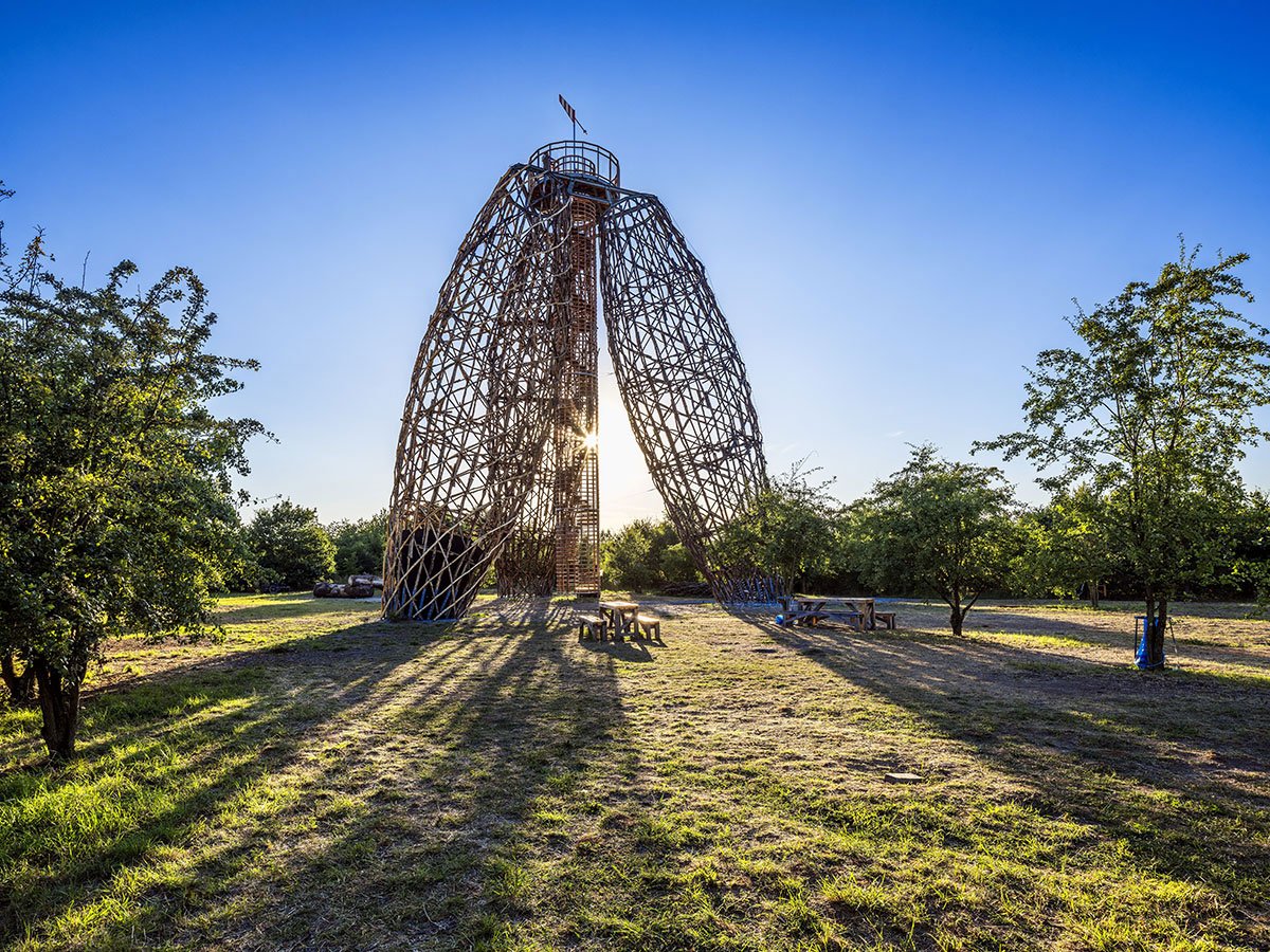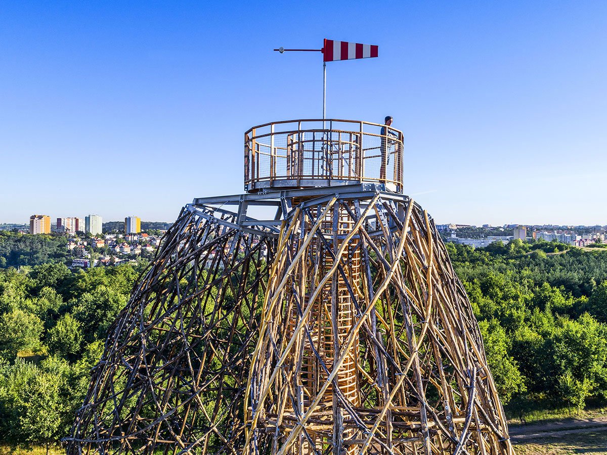 Excerpt: Doubravka is a lookout tower designed by HAMR Hut Architektury Martin Rajnis built using non-traditional building material – thin twigs not usually used for this type of structure, inspired by natural forms from Papua New Guinea and real birds’ nests.