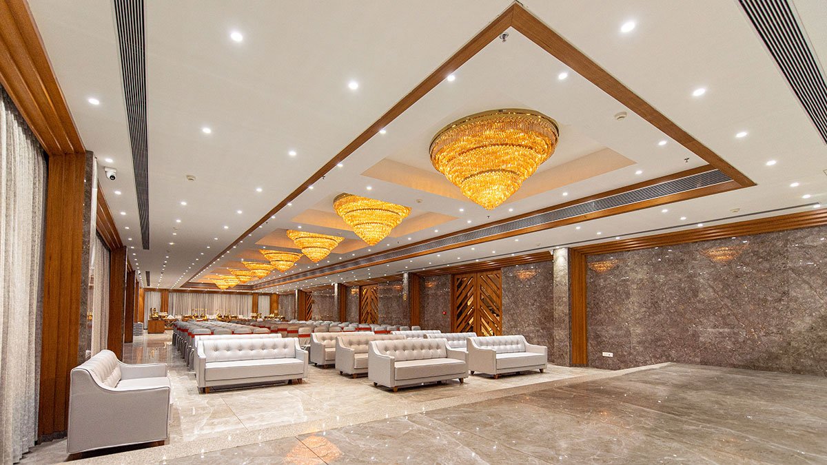 These random openings also ascertain visual connections from the banquets to the surroundings while keeping the privacy of event proceedings from the outside. Through these sensitive and measured articulations of form, circulation, and architectural elements the composition achieves overall wholeness that results in a unique event space environment and a very successful project in a bustling city like Surat.
