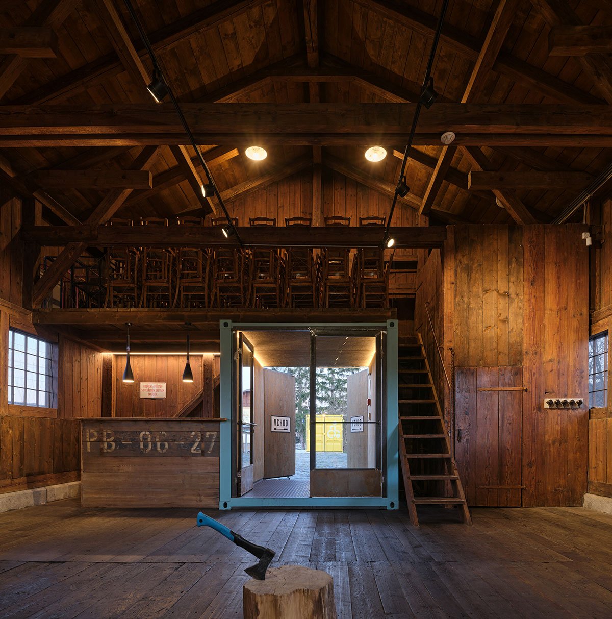 [Text as submitted by architect] This 19th century railway station warehouse stopped being useful for the railways and in the year 2010 was sold in a deteriorated state to the town of Řevnice. The hidden potential of this building was discovered by the headmistress of the local art school, who started using it as a space for exhibitions and recitals. The originality of this wooden “railway shack” enchanted the locals, and the so-called “Drevak” was given a second chance.