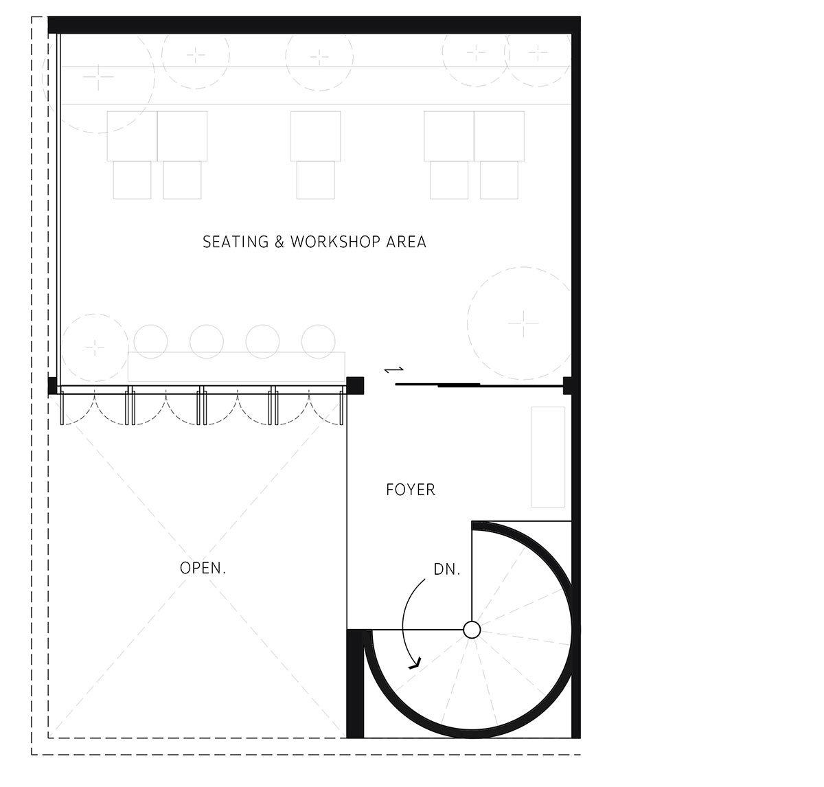 Early BKK is a small 2-storey building in the corner of the road. The entrance at the corner is a small double space courtyard with a big tree and pet parking area, offering a welcoming and friendly vibe. The 1st floor is a main coffee bar including coffee machines and slow bar, with few seats. Retails shelves for refill products, home coffee equipment, pet products and some second-hand clothes are in the back of the coffee bar area. The 2nd floor is all seating area, designed with a large window on both sides for ventilation. This room is designed for multipurpose uses that can be transformed into a workshop room.