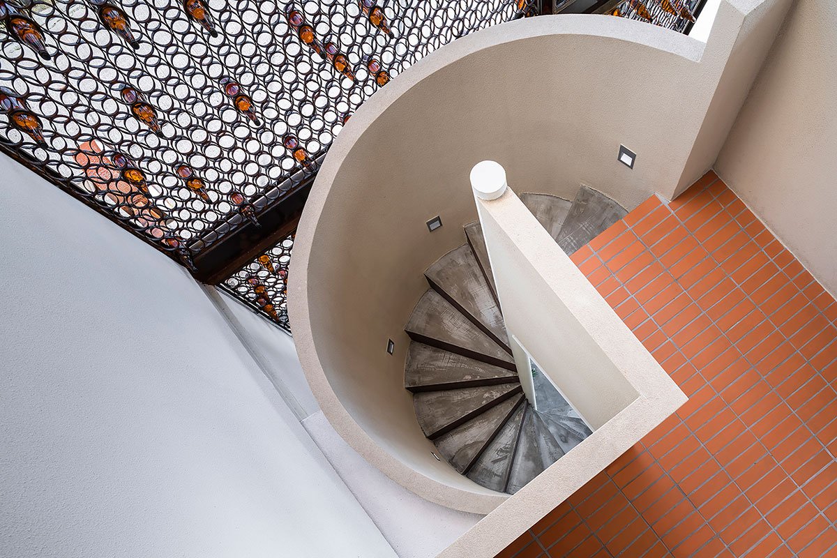 Excerpt: Early BKK by Space + Craft, is a small two-storey building in the corner of the road. The entrance at the corner is a small double space courtyard with a big tree and pet parking area. The cafe is based on a green and sustainable concept being an inspiring showcase of how interesting upcycling and waste materials can finally be transformed into something impactful. The elements like the 600 used beer bottles placed in the metal rings structure facade create stunning effects of lights and shadow in the cafe space.