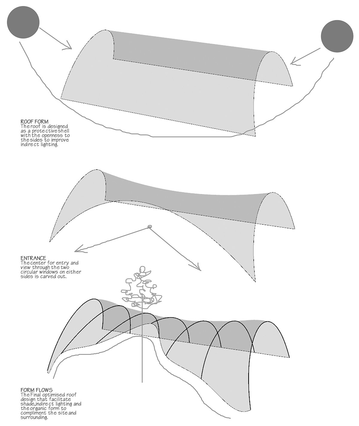 Set on a 4-acre hillside site, the retreat is conceived as a ferrocement shell cabin that adapts to the natural contours of the land. The design intention was to minimize cut-and-fill, preserve existing vegetation, and create a form that feels inseparable from its environment. Parametric modeling was used to generate the shell geometry, reducing surface area while ensuring structural efficiency and material optimization.