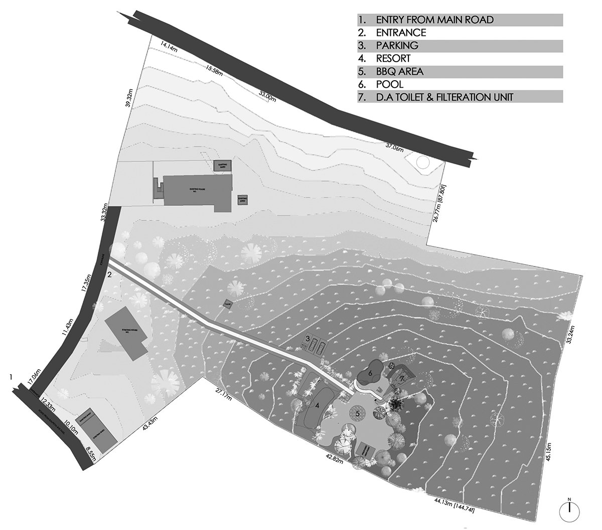 From an environmental performance perspective, the project integrates an Earth-Air Tunnel (EAT) system that reduces dependence on mechanical cooling. Detailed calculations of embodied energy revealed a performance of ~4.192 MJ per m², significantly lower than typical retreat structures in the region. This measurable efficiency highlights the project’s role as a prototype for low-energy tropical architecture.