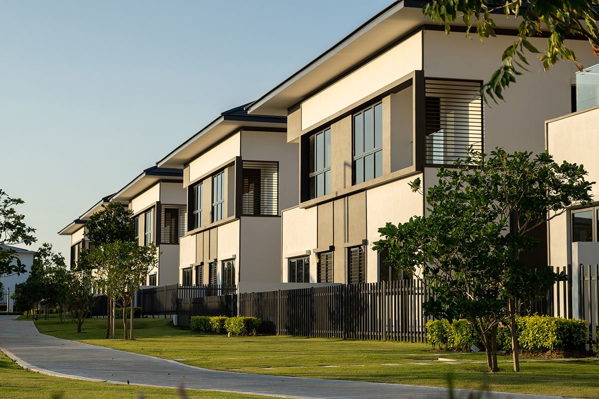 The double-storey dwellings are spread across a sprawling 41-acre parcel of land, linked by landscaped garden lanes that furnish the development with pleasant pockets of greenery. A clubhouse sits at the core of the community, providing a shared venue for socialisation and recreation.