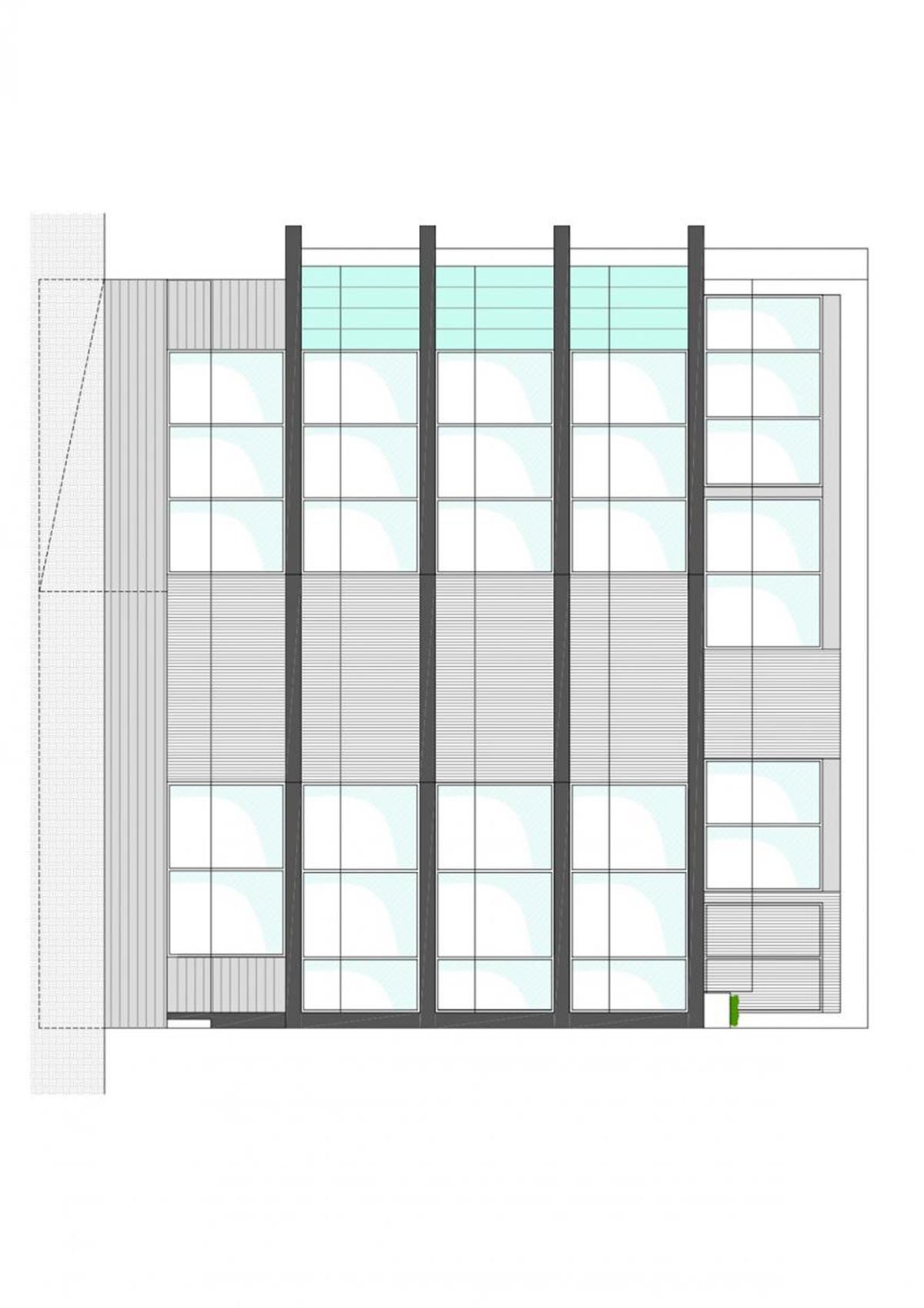 In this perspective, the building seeks to establish a neutral dialogue with the surroundings, expressing a clean and technical language. Part of a allotment, the construction was conditioned by the areas and urban parameters established there, presenting a basement for parking and 5 floors for housing. The typologies present are 3T2, 5 T3 and 1T3, responding to common housing programs, aimed at families.