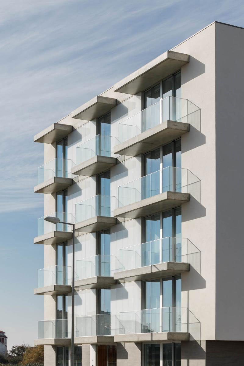 The challenge of the building came from the need for regulatory compliance and the desire to qualitatively score the place. The glazed balconies, allow the enjoyment of the place, and its environment, becoming exterior extensions of the housing compartments. The interiors express a simple but qualified language, which is neutral to any aesthetic standard and type of living. The materials present come from local suppliers, responding to superior quality standards, in a coherent and harmonious image among all.