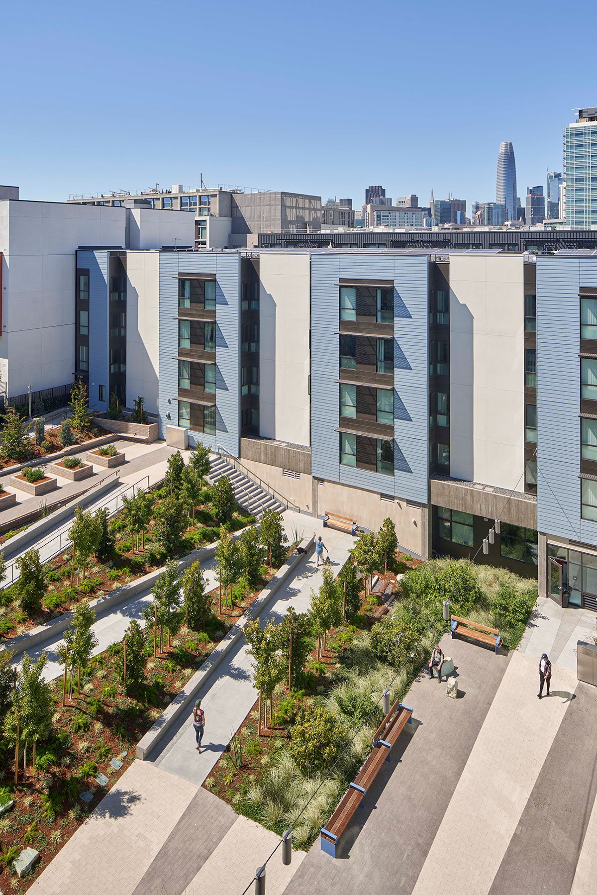 [Text as submitted by architect] A model for healthy living and resilience, the Edwin M. Lee Apartments is the first building in San Francisco to combine supportive housing for both unhoused veterans and low-income families. This collaboration—Leddy Maytum Stacy Architects, Saida + Sullivan Design Partners, Swords to Plowshares, and Chinatown Community Development Center—supports an integrated, equitable, and sustainable community in San Francisco’s Mission Bay neighborhood.