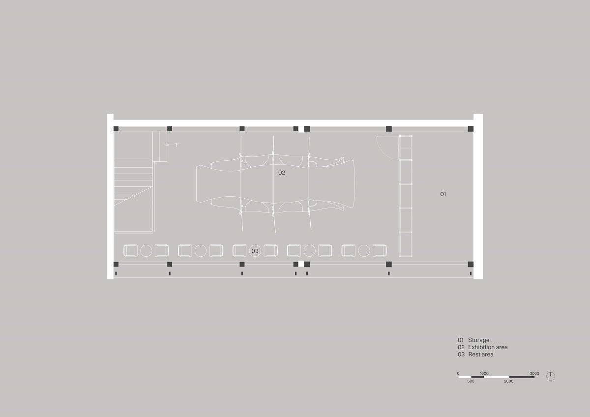 say kept the wooden structure of the original architecture, which was re-polished and painted. The single direction natural lighting reveals the beauty of texture. say used 36 aluminium honeycomb plates as suspended ceiling between the beam positions. The light, firefighting, and HVAC equipment hide above the transparent suspended ceiling. The light evenly spreads in the exhibition hall through diffuse reflection. It seeks a kind of balance between modern and tradition.