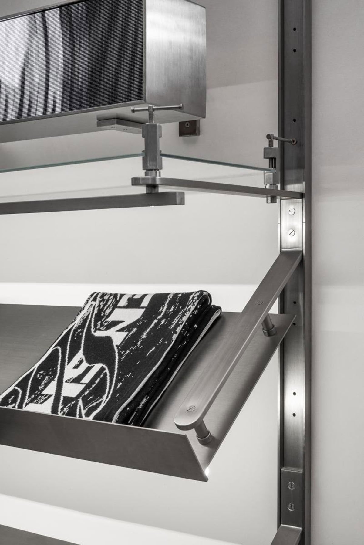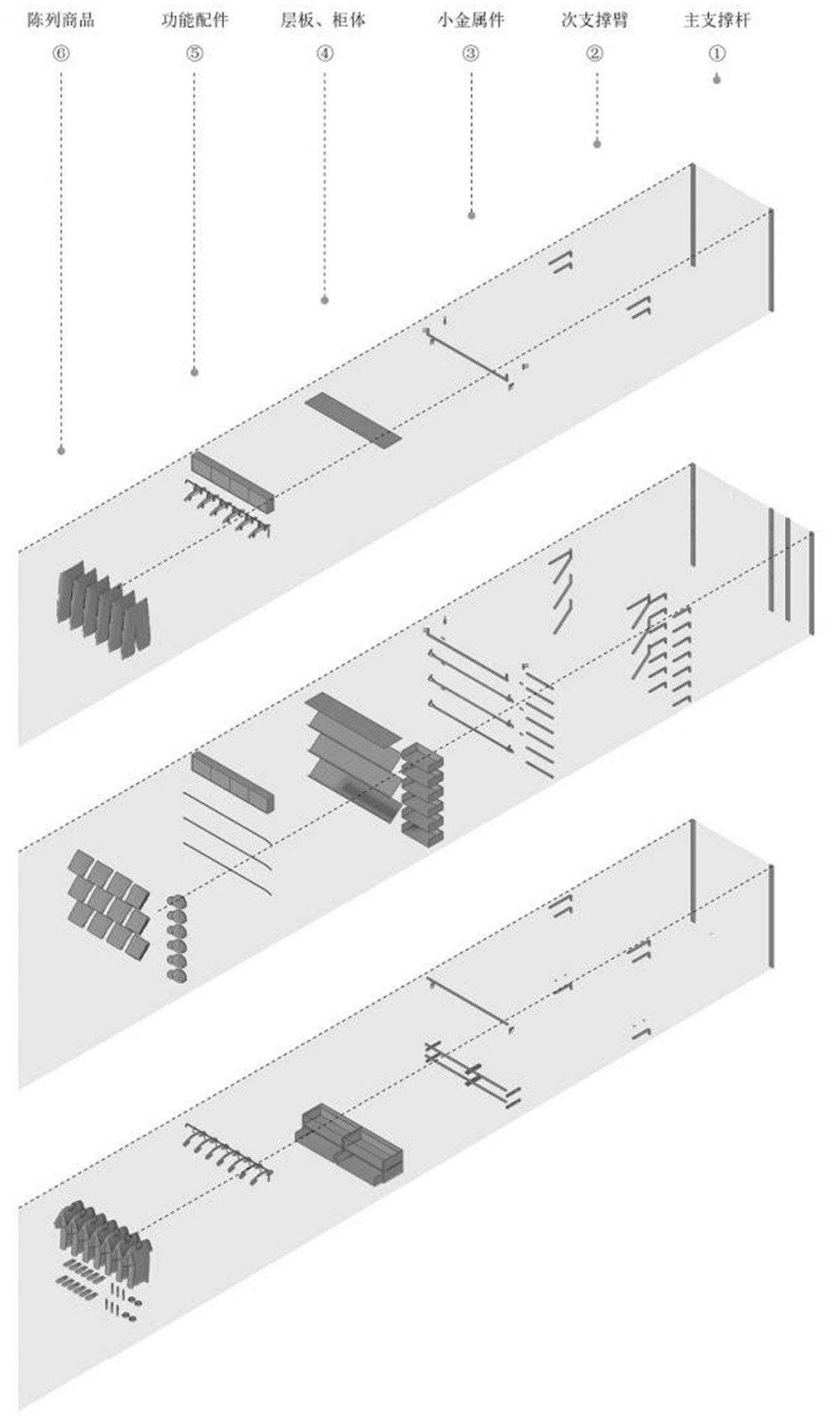 A fixed-gear bicycle has 19 parts joint. Each modularized part has powerful compatibility, which significantly increases the possibility of refit, while the designed details of the brand on the costume all manifest its seeking of functionality. say customized a set of exhibit system “twelve” for the brand, which covers functions of suspending, object placement, exhibition, lamplight etc., based on the property of the product. The system is just composed of 12 mould available parts. Their intercombination could form tens of thousands of variable exhibition ways. Some parts could also be used as a cantilever arm of the cafe bar at the same time.