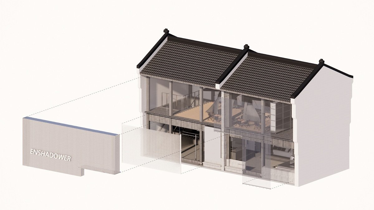 [Text as submitted by the Architects] Established in 2012, ENSHADOWER® is a functional clothing brand that acquired inspiration from fixed-gear bicycle sport at the earliest time in the domestic, say architects was commissioned to design the first offline store located in Nanyu street of Hangzhou. Review the past decade, a developing golden era for both the brand and Hangzhou City. say introduced the industrial materials used in the city’s construction and starts a conversation across time between the brand and the site.