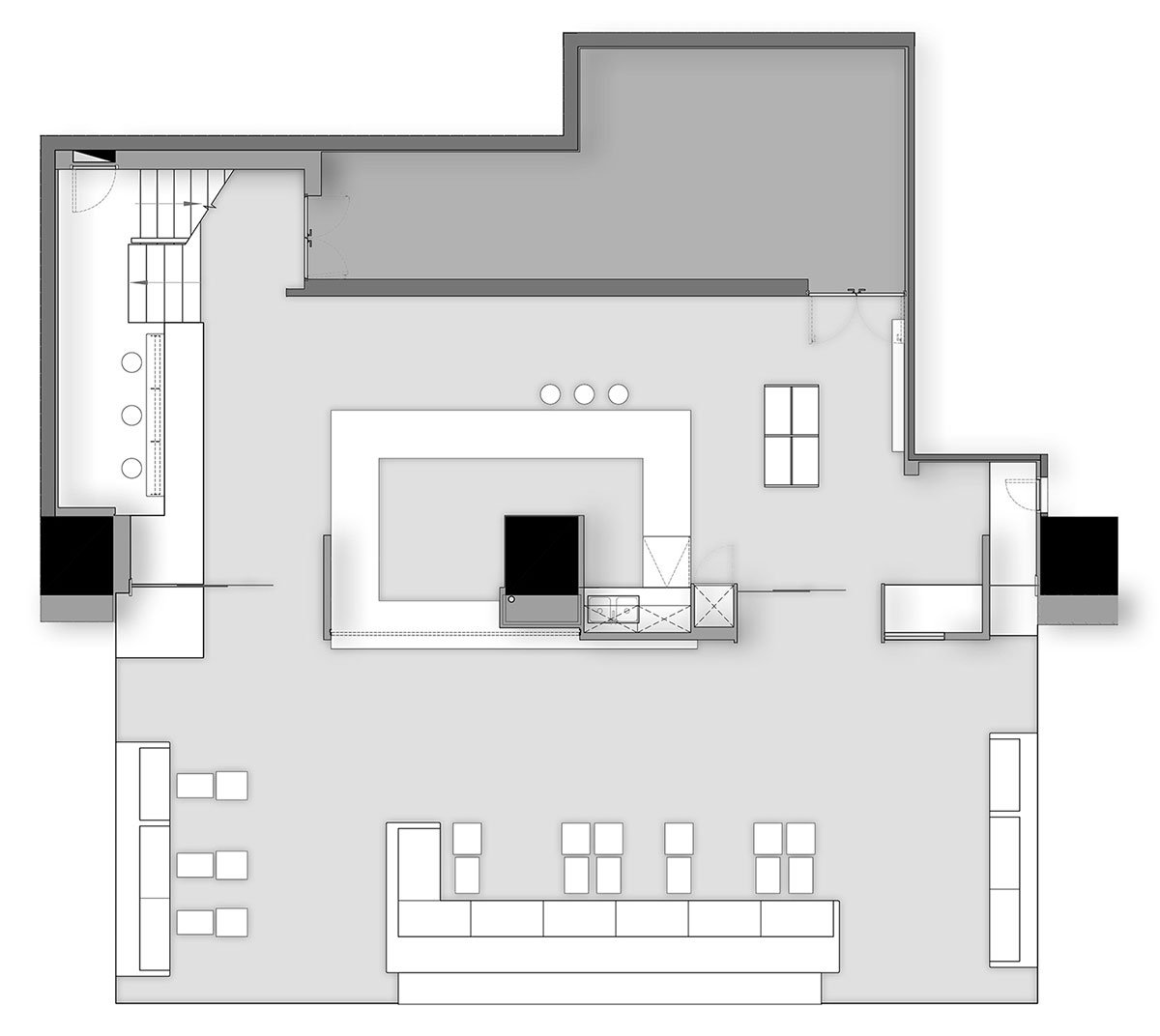 The upward folding windows create an outwardly communicative street vending experience, which, combined with the open outdoor dining terrace, subtly creates a resort-like atmosphere.