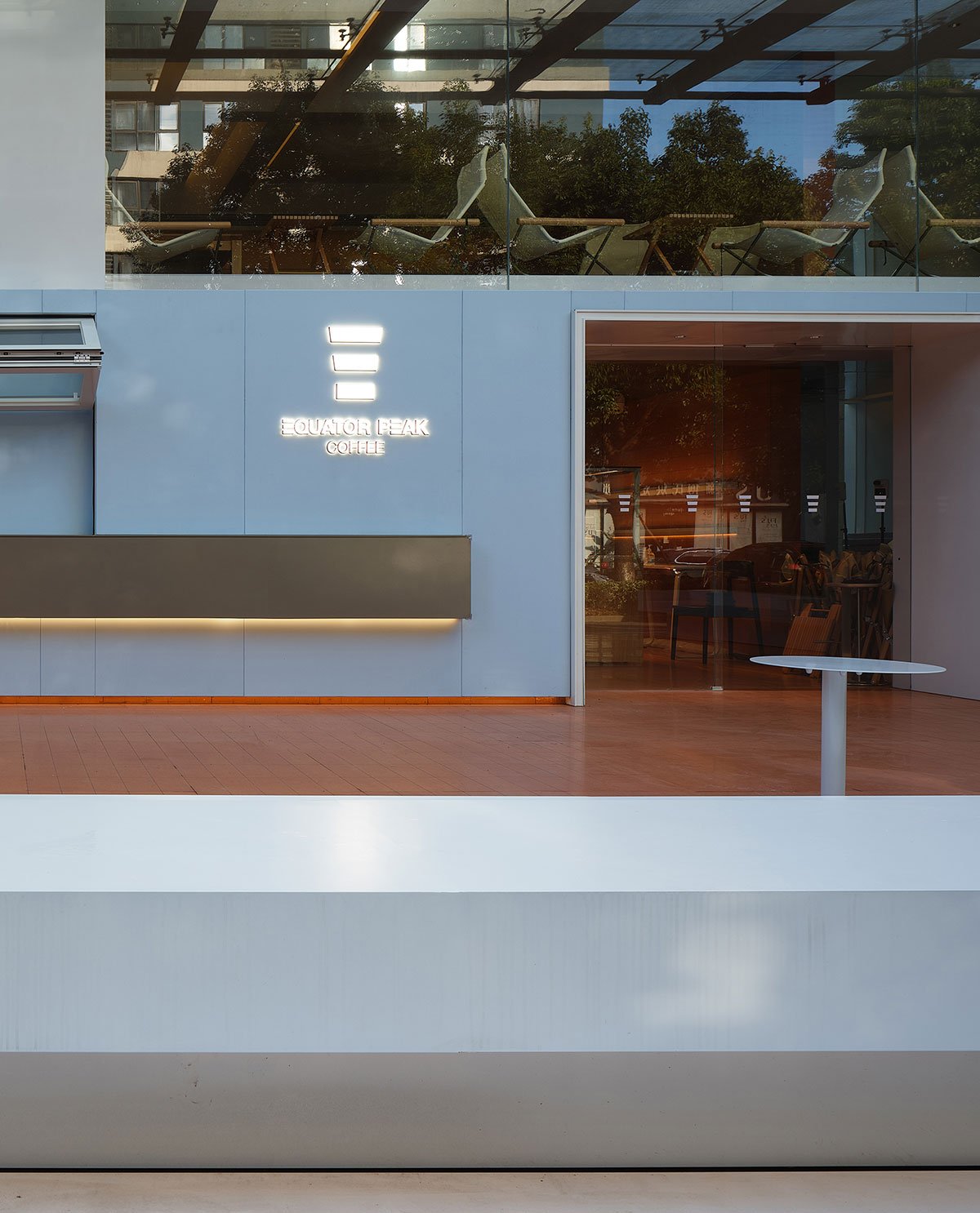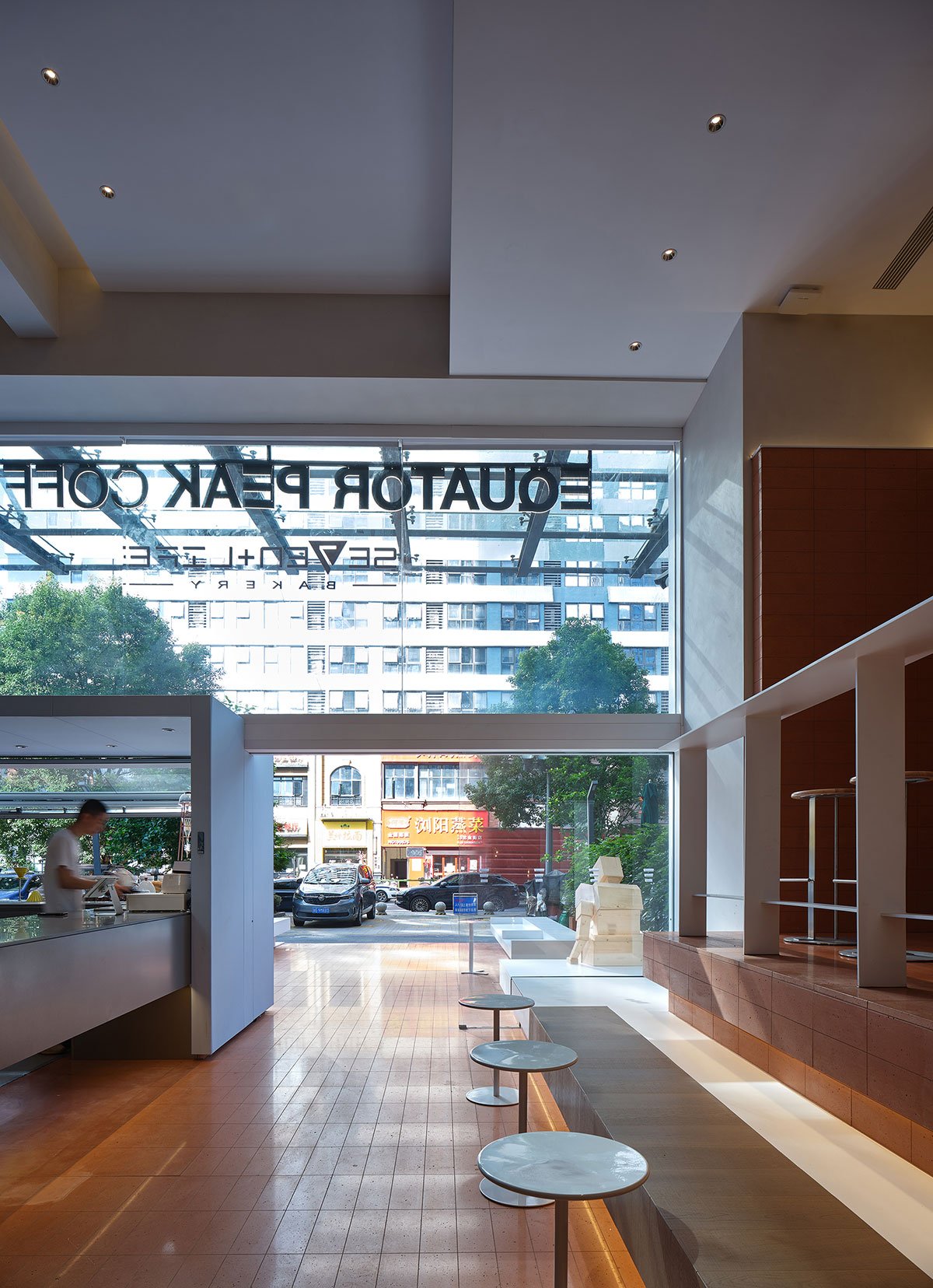 [Text as submitted by architect] Yiwu is located in Zhejiang Province, the geographical center of Hangzhou, Ningbo and Jinhua, with intensive exchanges with other cities in Zhejiang. Equator Peak Coffee is in the center of Yiwu, with easy access to the city and a riverside view. It is close to Wanda Plaza and high-end residential areas, with a stable audience with a certain level of purchasing power.