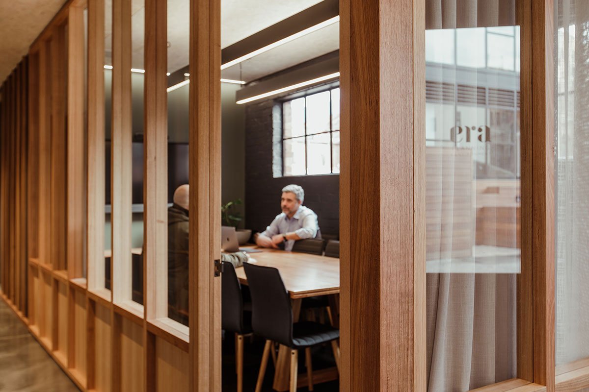 Excerpt: ERA Planning & Environment Office, designed by Cumulus Studio, interior conversion and adaptive reuse of an inner-city retail premises which has been converted into a warm and inviting office. Functionality was key throughout the design process with requirements for an open plan workspace, break out meeting rooms, amenities, and relaxation spaces. The meeting rooms are a highlight, providing versatility, all technological requirements and comfort.