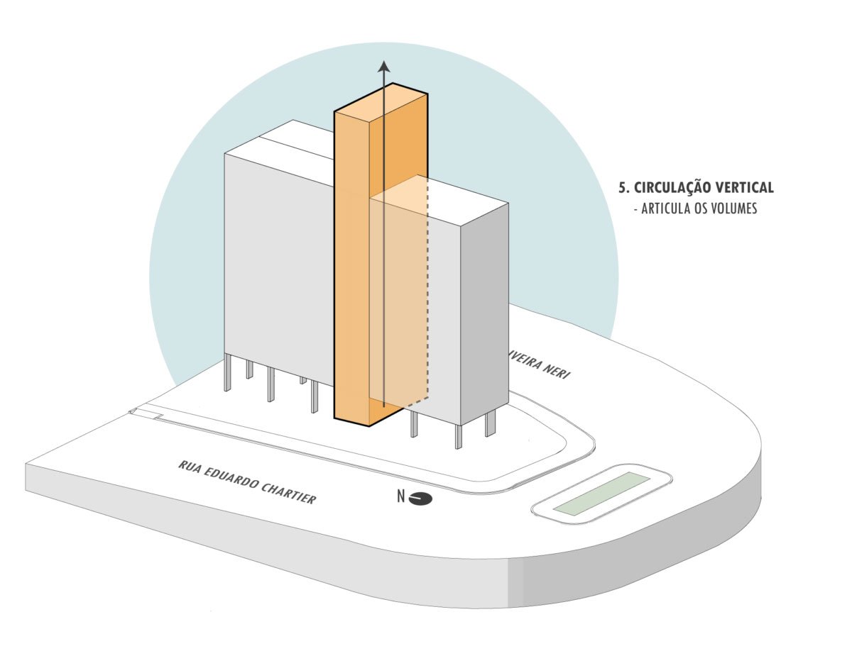 Excerpt: Esquina Chartier, designed by Oficina Conceito Arquitetura, is a housing project with a trapezoidal terrain with 3 fronts. It gave this project a fantastic potential, allowing the building to stand out from its surroundings. The building’s body rises in a volume suspended by pilotis, generating visual permeability between the streets. Organized in such a way as to take advantage of the exotic shape of the land, the three apartments per floor were distributed in such a way that they were all considered ” front apartments, “the corner one being the most generous in area and visuals.