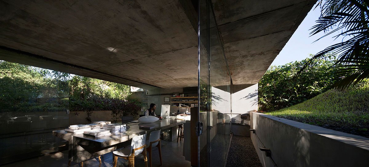 Excerpt: Estudio tda designed by TDA redefines the office space as a need to generate shelter. Based on logic of construction that rethinks economy, resources, need and space. This way, an 7×5 excavation. An absolute connection with the landscape. A 5 centimeters concrete plane that folds generates inertia and because of an absolutely elemental reasoning, a plate becomes a structural support.