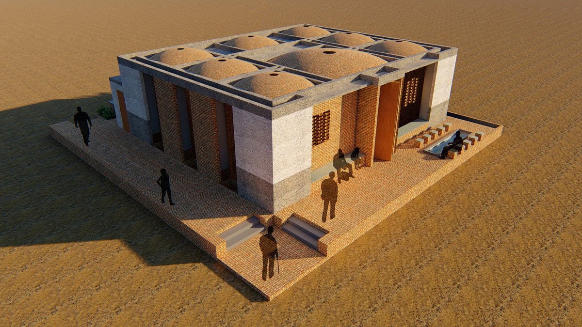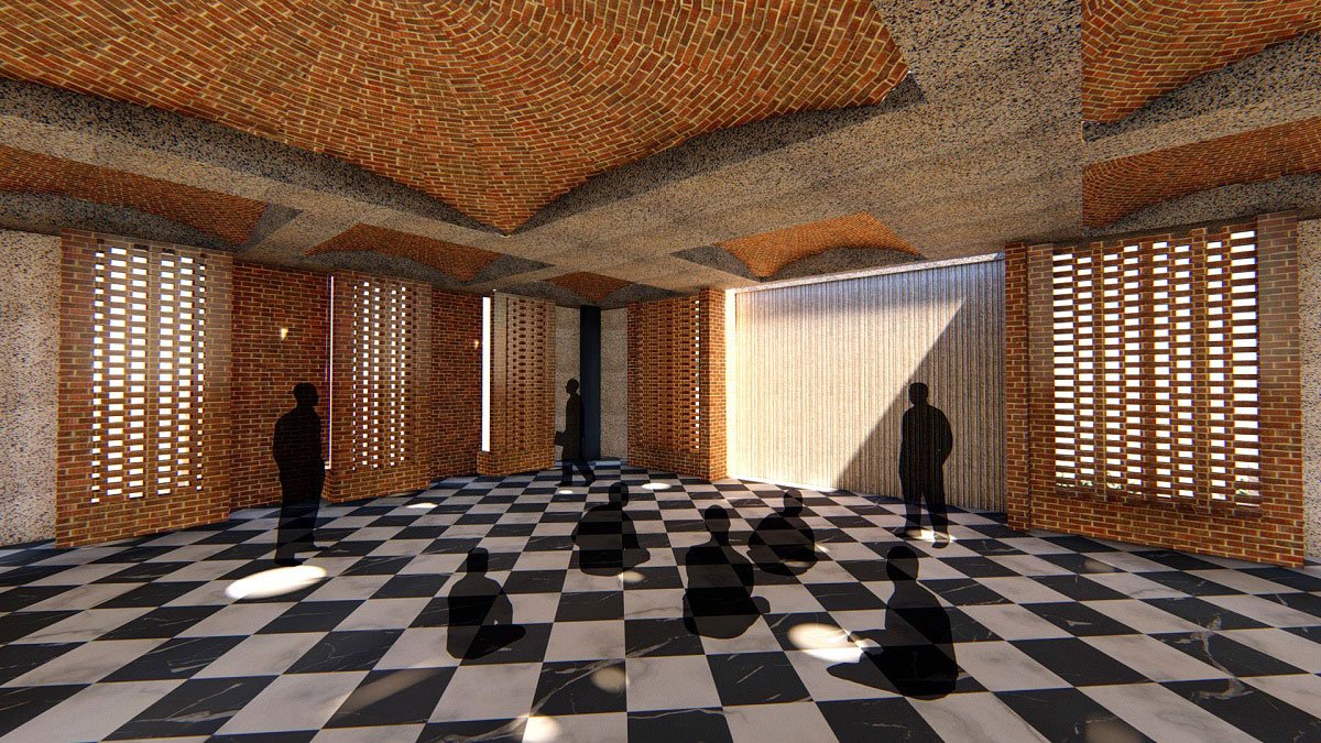 The programme consists of a park with a walking track, two mosques (Sunni and Shia), a club house with a common hall, gym and indoor games area, play area for kids, sports area, barbeque area and seating spaces for elderly and women. The mosque has several flat brick domes with an oculus on the roof and staggered brick jaali walls. The light filtered through the jaalis, the varying volumes because of the domes, the shafts of light falling directly from the oculi and the contrasting geometrical patterns on the floor create a heightened spatial experience inside.