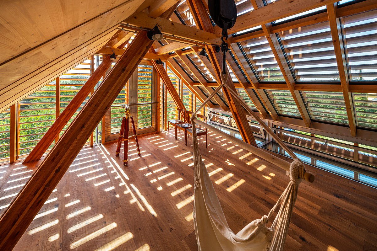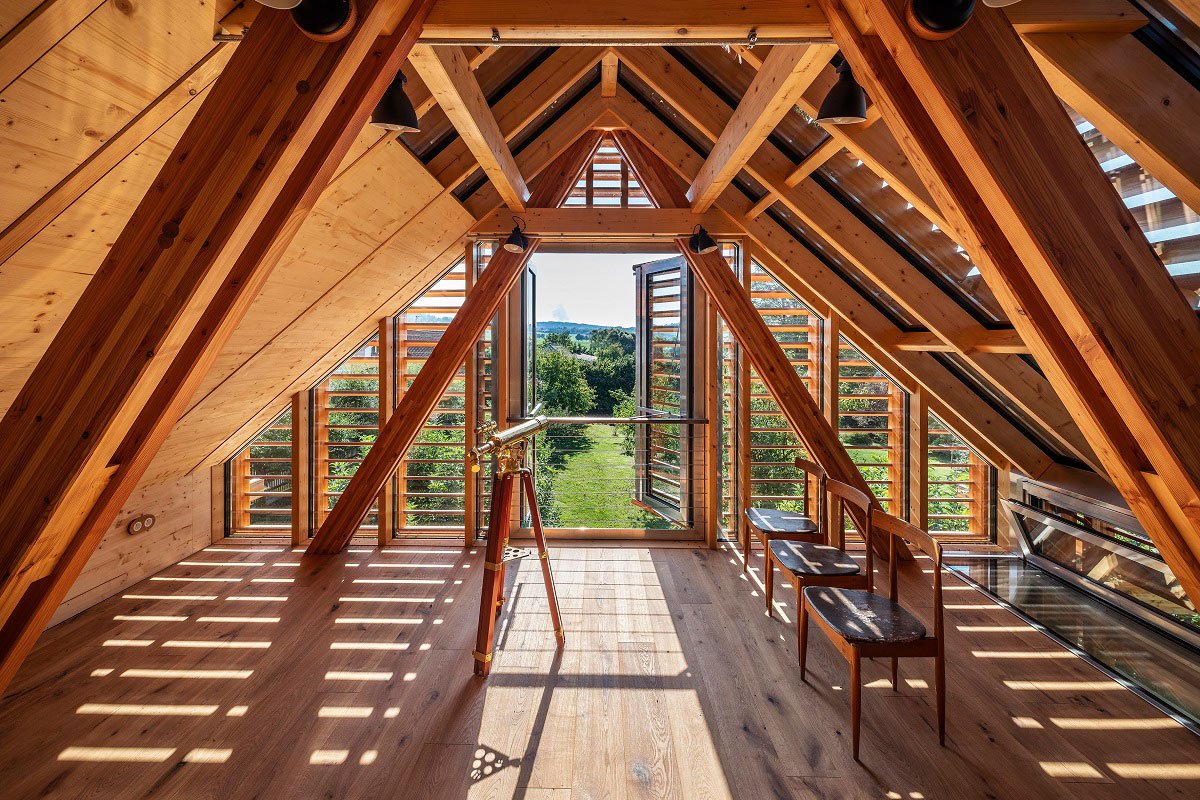 It’s very nice to realize that when you look at photos, there’s not much to add. We have already proclaimed several times that beauty can arise as an expression of a logical, moderate construction that uses the possibilities of wood to the consequences. At first glance, you can see how properly shaped wood can create beauty in space without the need for any ornament or “aestheticized architecture”.